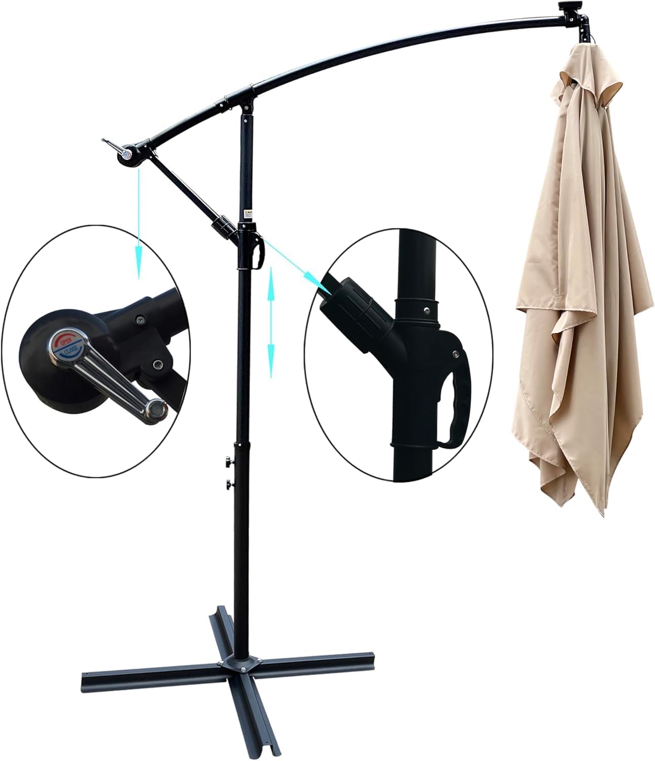 - ✅ HIGH DURABILITY: Crafted from 180G polyester fabric, this 10x6.5ft offset patio umbrella ensures fade resistance, waterproofing, UV protection, and easy cleaning. The 1.9" diameter rust-resistant pole, 6 sturdy steel ribs and cross base, with a powder-coated finish, can withstand winds up to 20 mph. The vented top design increases stability and keeps the area cool, making this cantilever umbrella ideal for long-term outdoor use.