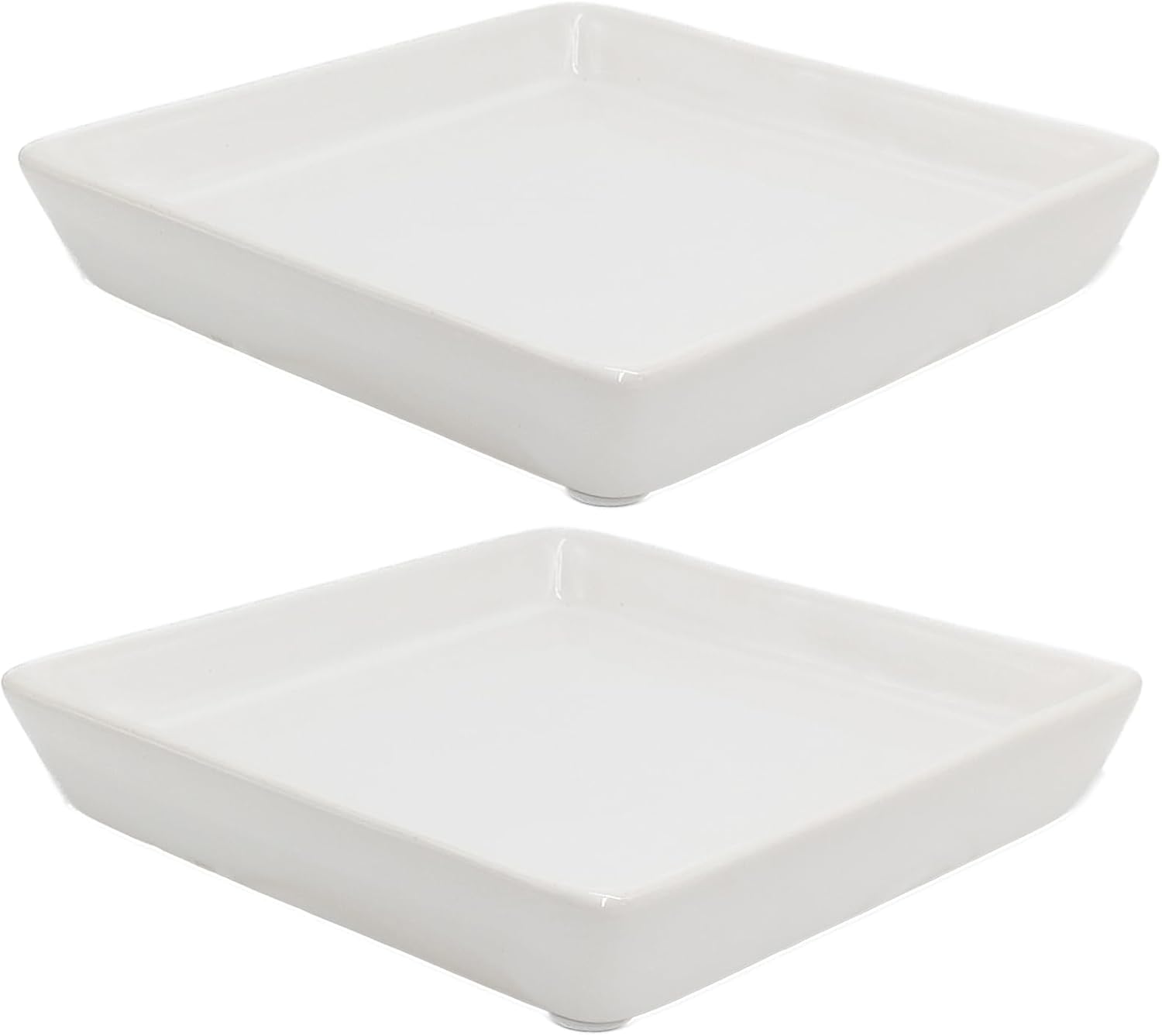 Square Plant Saucer 6 Inch 2 Pack,Plant Trays for Pots, White Ceramic Plant Saucers for Indoors Outdoors, Plant Drip Tray 4 6 8 10 12 14 Inch