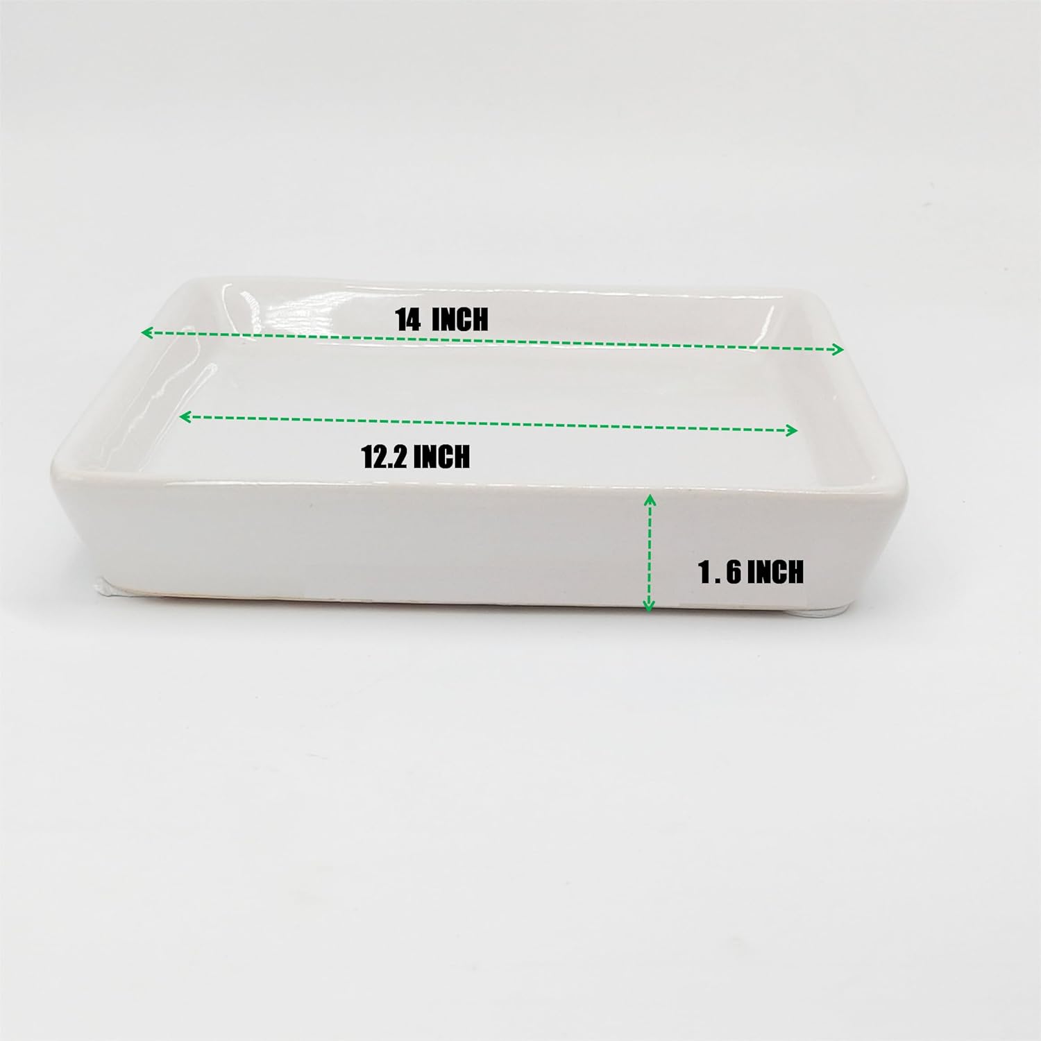 Square Plant Saucer 14 Inch 1 Pack,Plant Trays for Pots, White Ceramic Plant Saucers for Indoors Outdoors, Plant Drip Tray 4 6 8 10 12 14 Inch