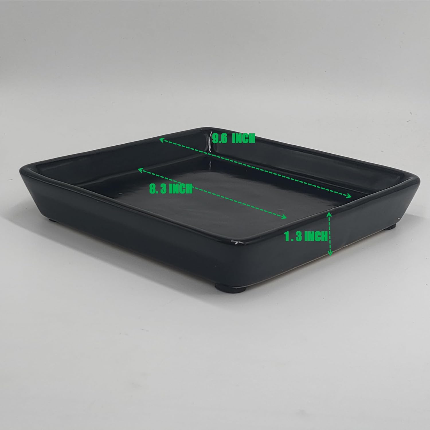 Square Plant Saucer 10 Inch 2 Pack,Plant Trays for Pots, Black Ceramic Plant Saucers for Indoors Outdoors, Plant Drip Tray 4 6 8 10 12 14 Inch