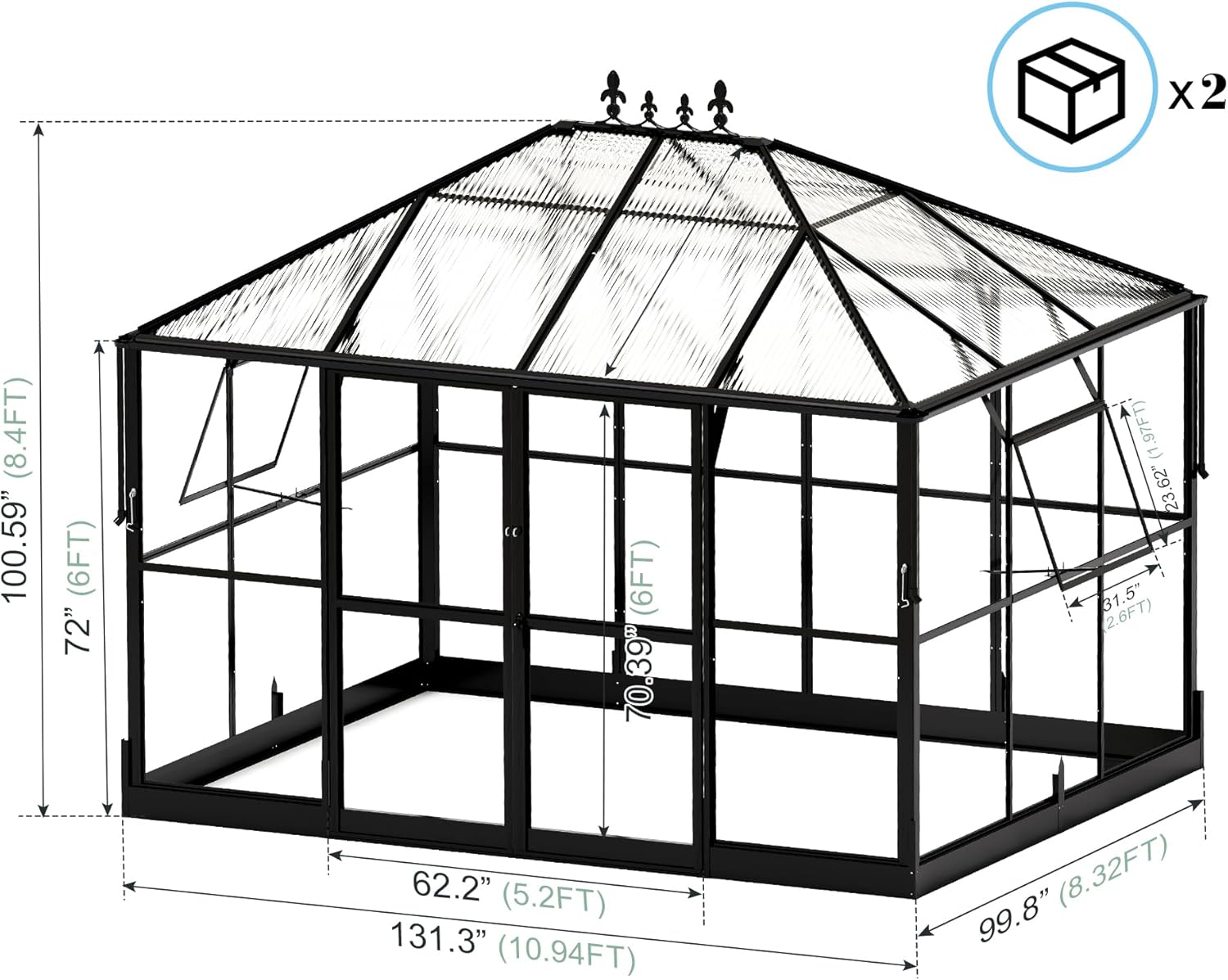 - 【Unique Clear Panels】 Equipped with unbroken clear PC panels and 6mm twin-wall translucent polycarbonate PC panels– superior clarity, impact resistance, UV protection, and energy efficiency for a brighter, safer, and more comfortable space!