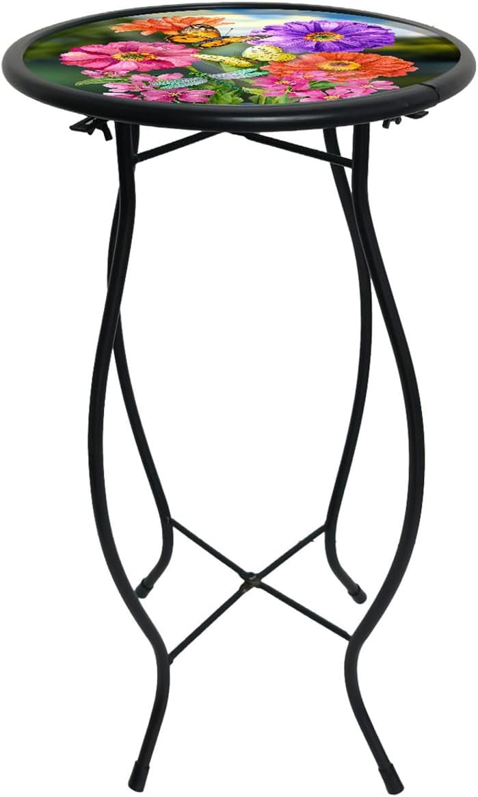 - Printed Glass Top Catches Sunlight Enhancing Porch or Patio