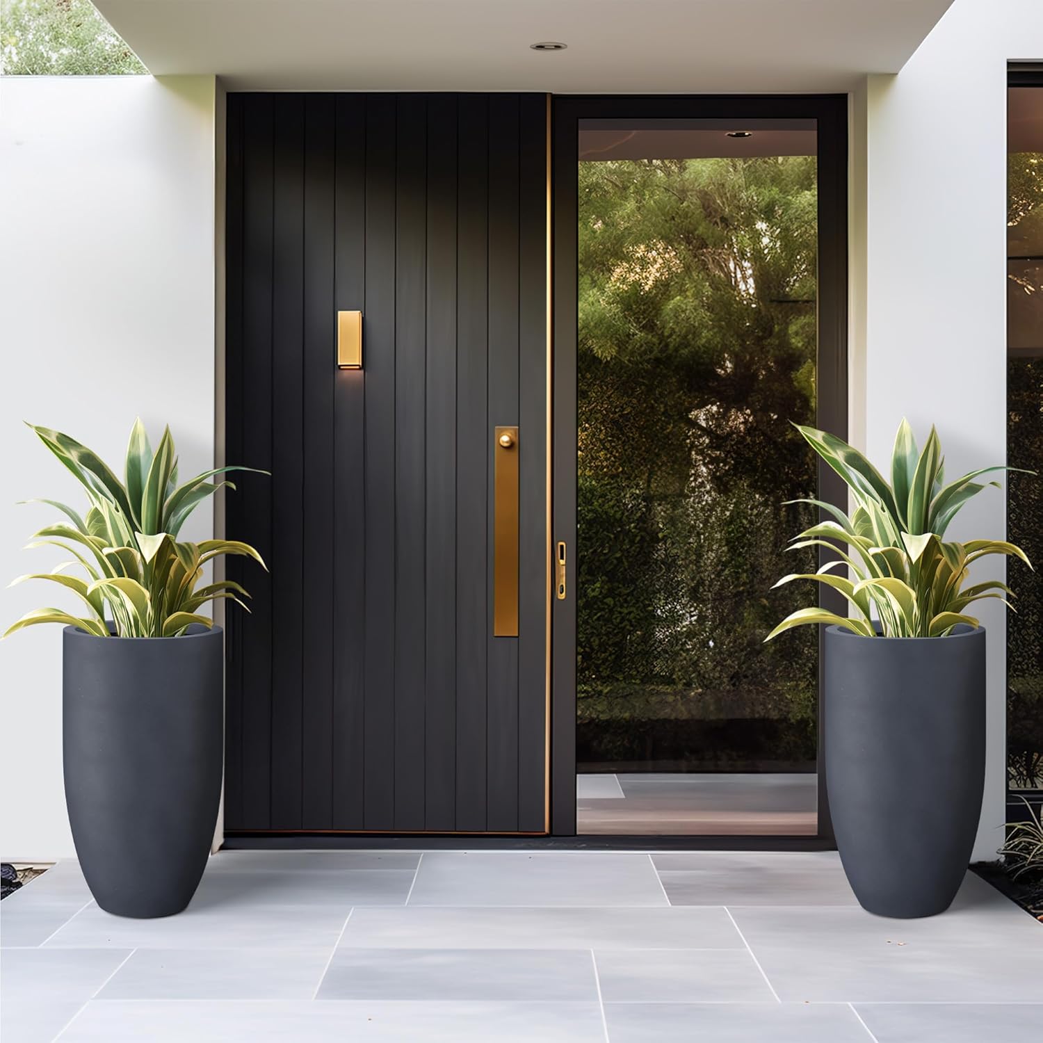 Kante 24 Inch Tall Round Concrete Planter, 2 Pack Large Indoor Outdoor Plant Pots with Drainage Hole and Rubber Plug, Modern Decorative Garden Pots for Home Patio Porch, Charcoal