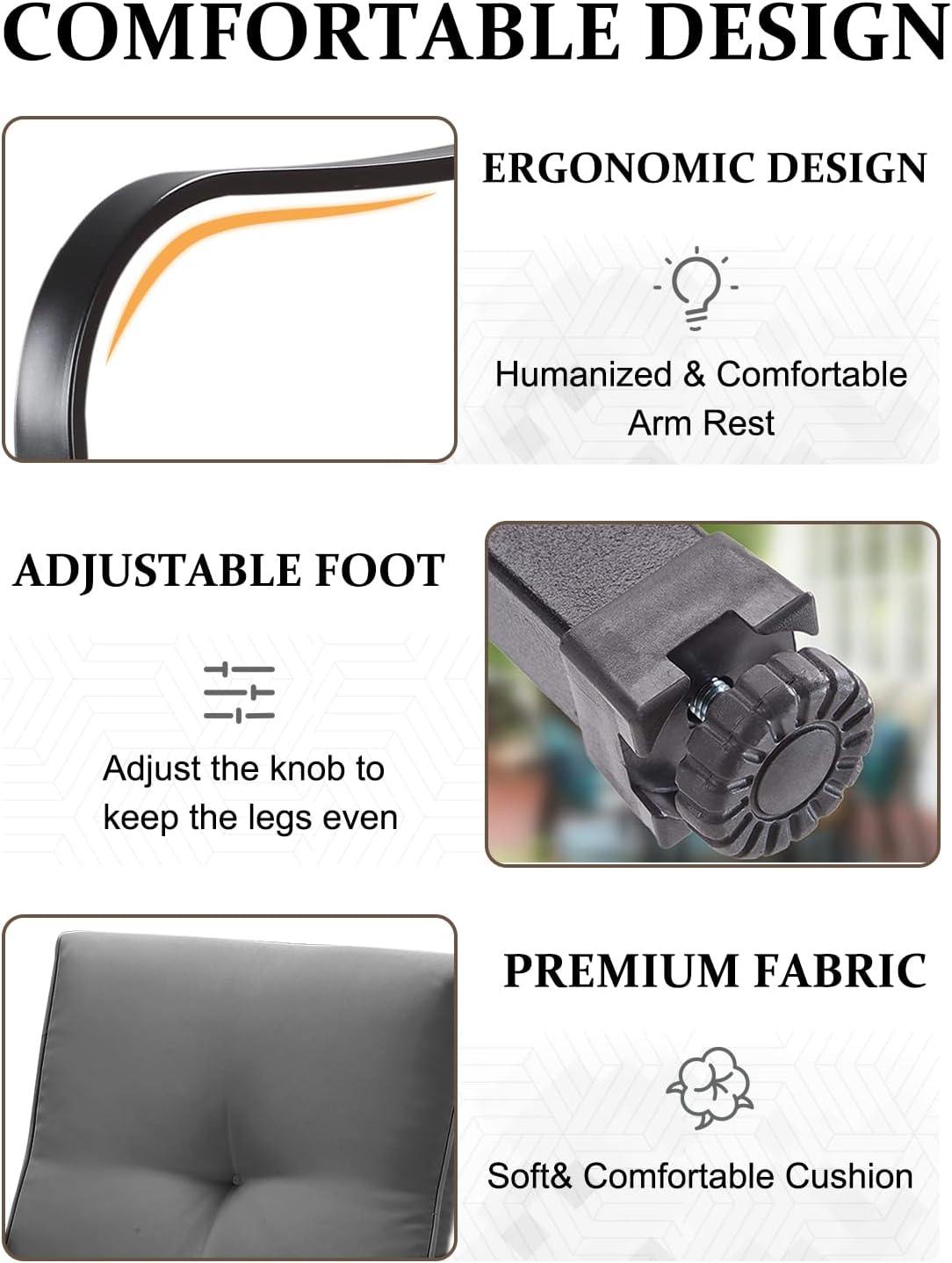 - Multiful Purpose: This patio swivel bar chair has an simplistic overall style to fit most decoration or settings. Sturdy iron frame with padded cushion made this patio bistro set perfect for both outdoor and indoor usage