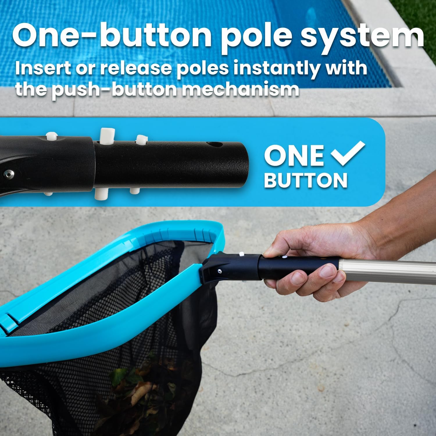 - Sturdy Aluminum Frame - The pool skimmer net is designed with a sturdy aluminum frame, ensuring long-lasting working & resistance to wear & tear; Weight capacity: 6.6lbs