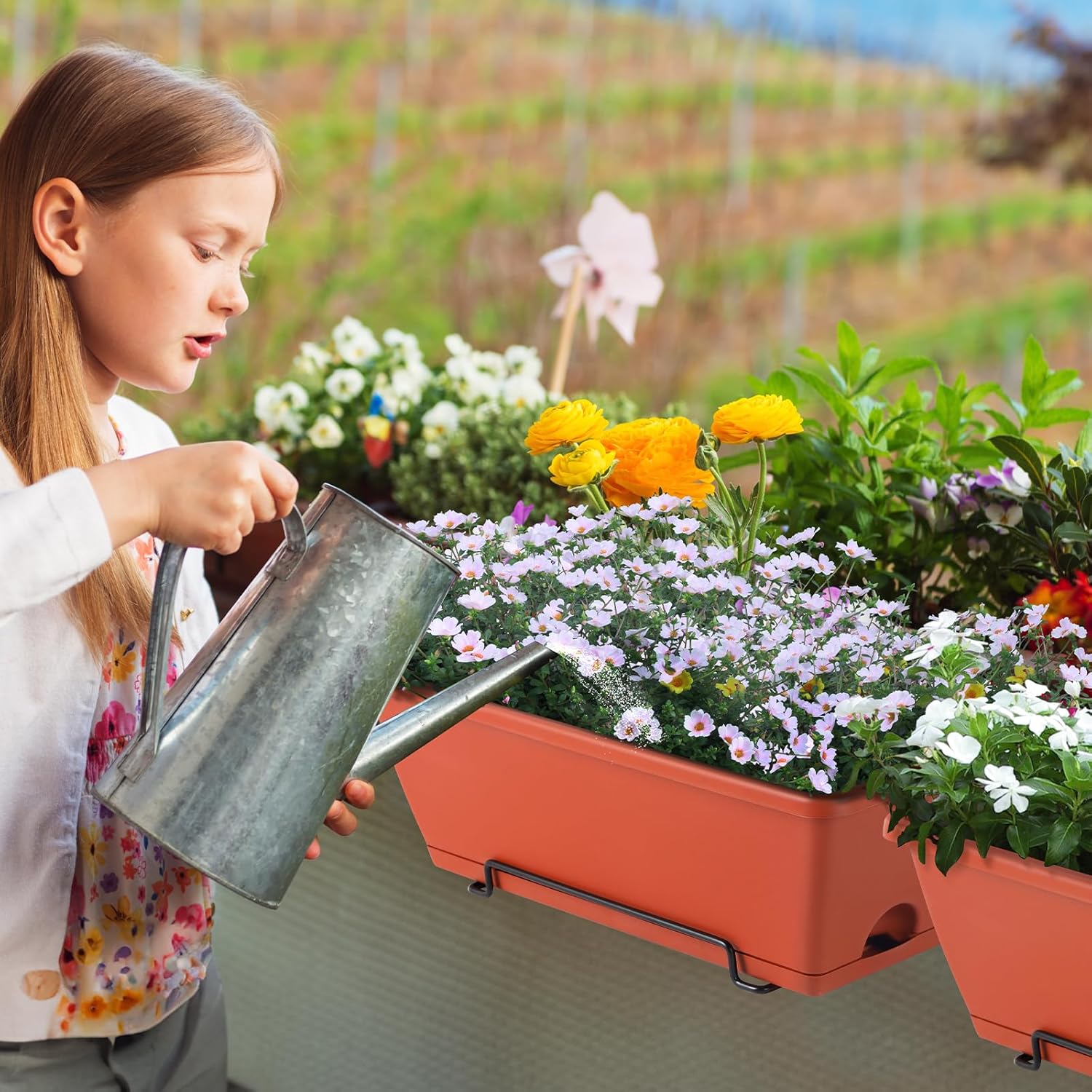 - Ideal for Plant Display:This rectangular window planter box have a stylish and beautiful look ,fit on most windowsills, balconies, fence,garden and other areas. The railling planter boxes can grow colourful flowers,Fresh veggies, salad garden, and much more.Enjoy a lush indoor outdoor garden view from your window.