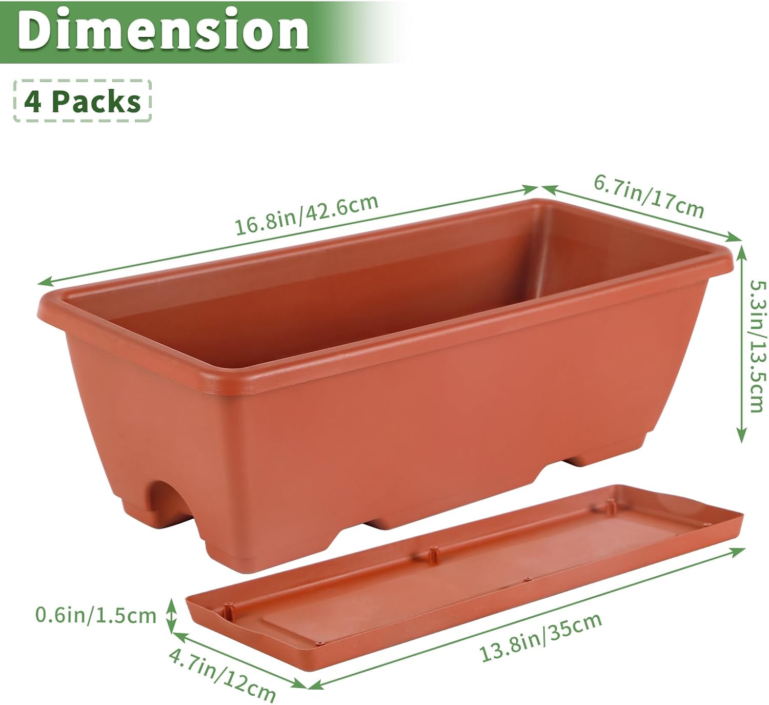 - Ideal for Plant Display:This rectangular window planter box have a stylish and beautiful look ,fit on most windowsills, balconies, fence,garden and other areas. The railling planter boxes can grow colourful flowers,Fresh veggies, salad garden, and much more.Enjoy a lush indoor outdoor garden view from your window.