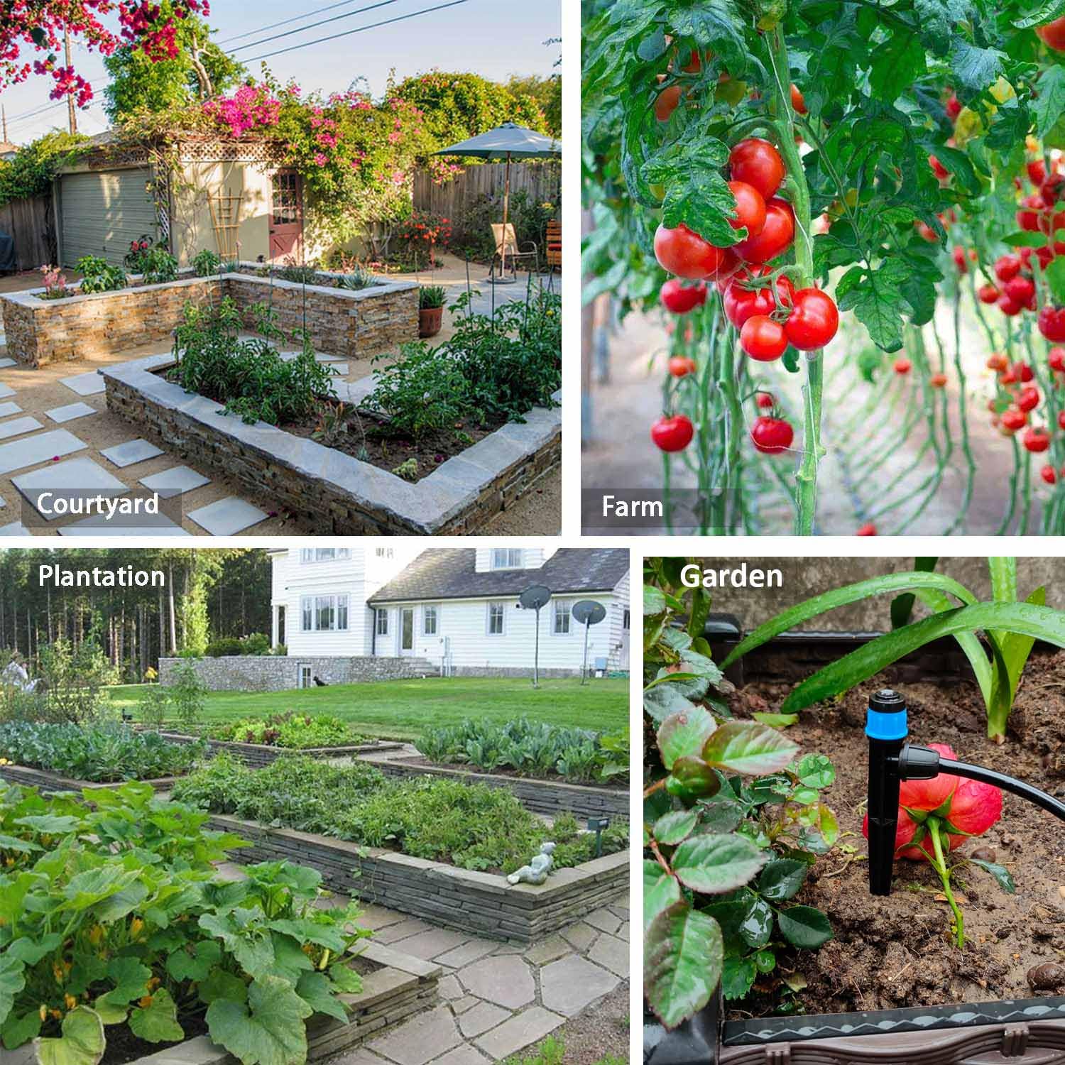 - With perfect gardening watering system🔶🔶 1 set of automatic watering system, 64FT of 1/4" hose, 16PCS of adjustable water springs, 1 set of 3/4" Y-connectors, 16PCS of T-connectors, 5PCS of other accessories;