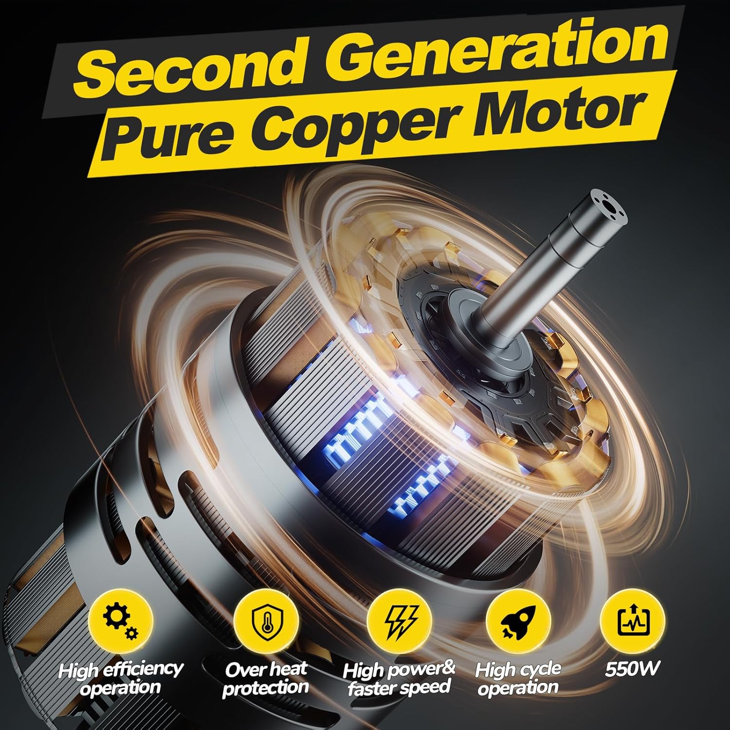 - HIGH-EFFICIENCY BATTERY-POWERED CUTTING: Experience professional-grade cutting with the 550W brushless motor and 23000 RPM speed, achieving 25.26ft/s cutting efficiency. Designed for heavy-duty tasks, the mini electric chainsaw features a 6-inch hardened chain blade that slices through branches (up to 6-inch diameter), firewood, and DIY materials effortlessly. Ideal for storm cleanup, garden pruning.