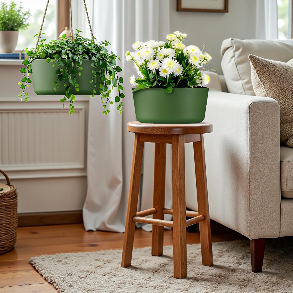 10.7 Inch Hanging Planter for Outdoor Indoor Plants,2 Pack Hanging Flower Pots with Drain Holes for Garden Home Decor Use (Dark Green)