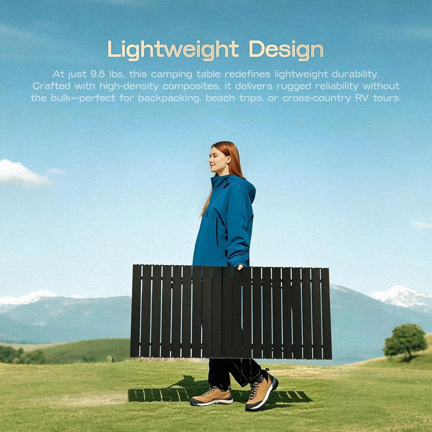 - [Multifunctional for Every Scenario] From camping cookouts to backyard parties , this lightweight camping table adapts to picnics, BBQ, fishing, garden, yard, beach, hiking, or indoor use. Fits 4-6 people with 47''x22'' workspace.