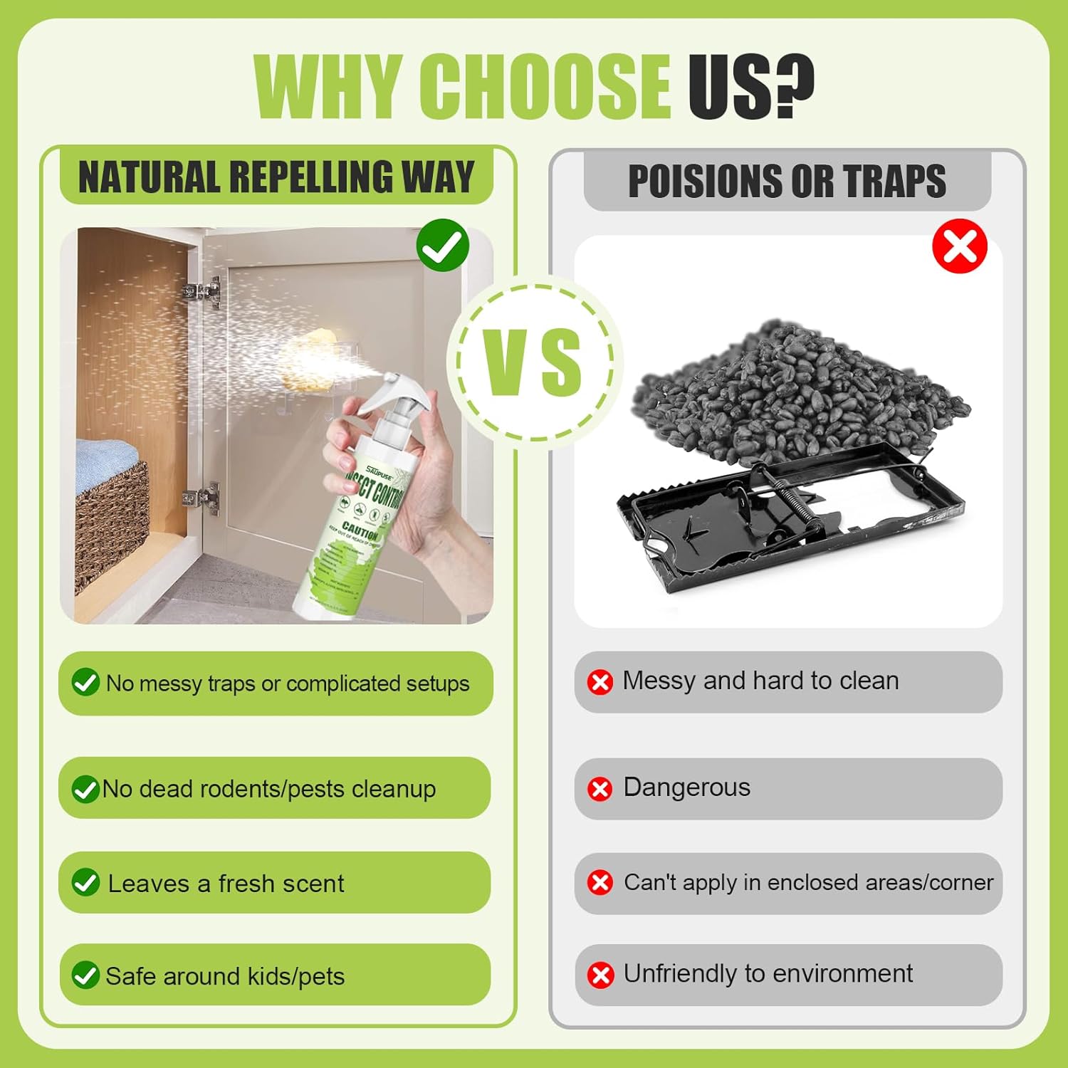 - ๐ฟ๐๐ผ๐ป๐๐ถ๐ป๐๐ผ๐๐ ๐ฃ๐ฟ๐ผ๐๐ฒ๐ฐ๐๐ถ๐ผ๐ป - our pest control spray keeps pumping out insect/rodents-terrifying scent waves 24/7 - enough to outlast a full month of rodent rebellion. One bottle protects 500+ sq ft - basically a bouncer for your entire property.