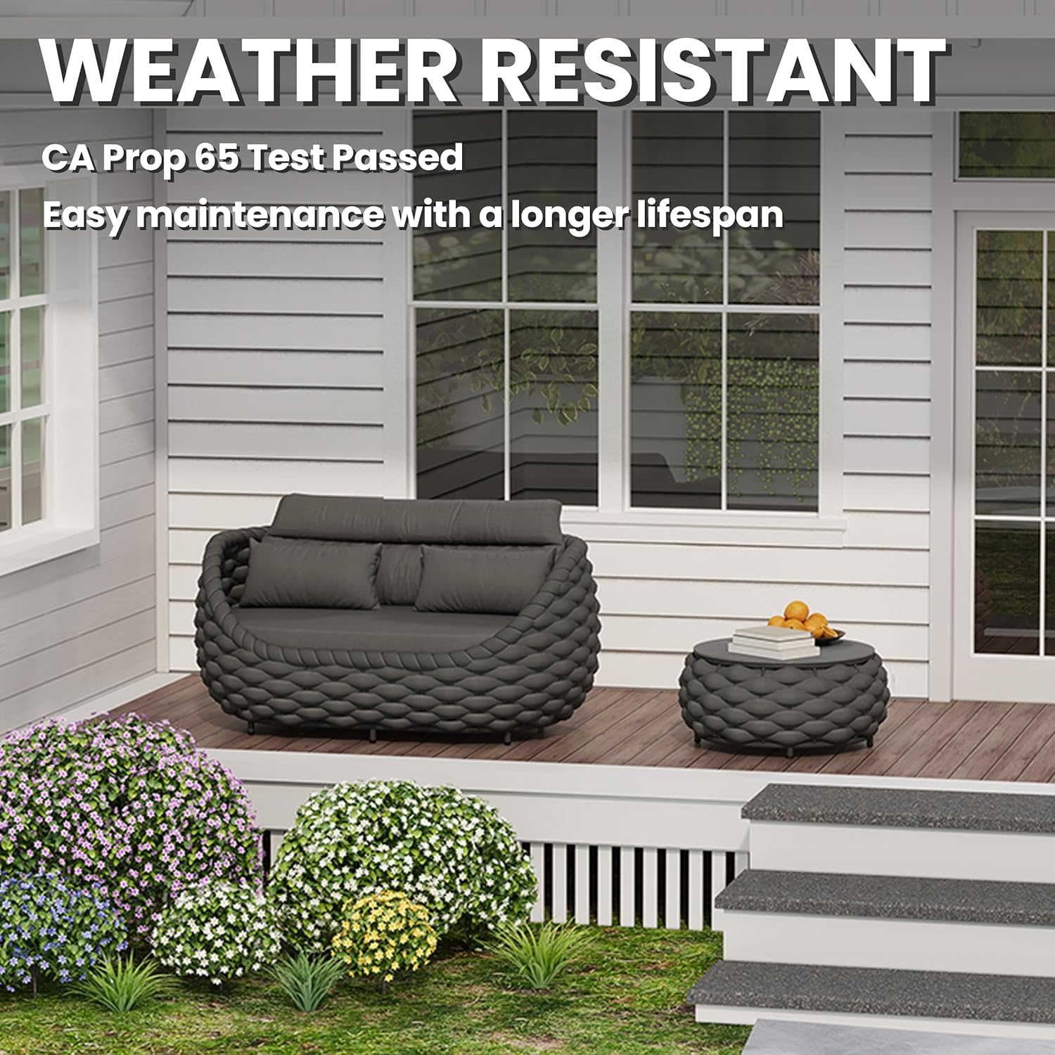 Patio Loveseat with Table: Aluminum Hand Woven Rope 2 Piece Patio Furniture Set - Cushioned Outdoor Seating Set - Modern Metal Lounge Set Assembled for Porch Balcony Deck Garden Hotel, Dark Grey