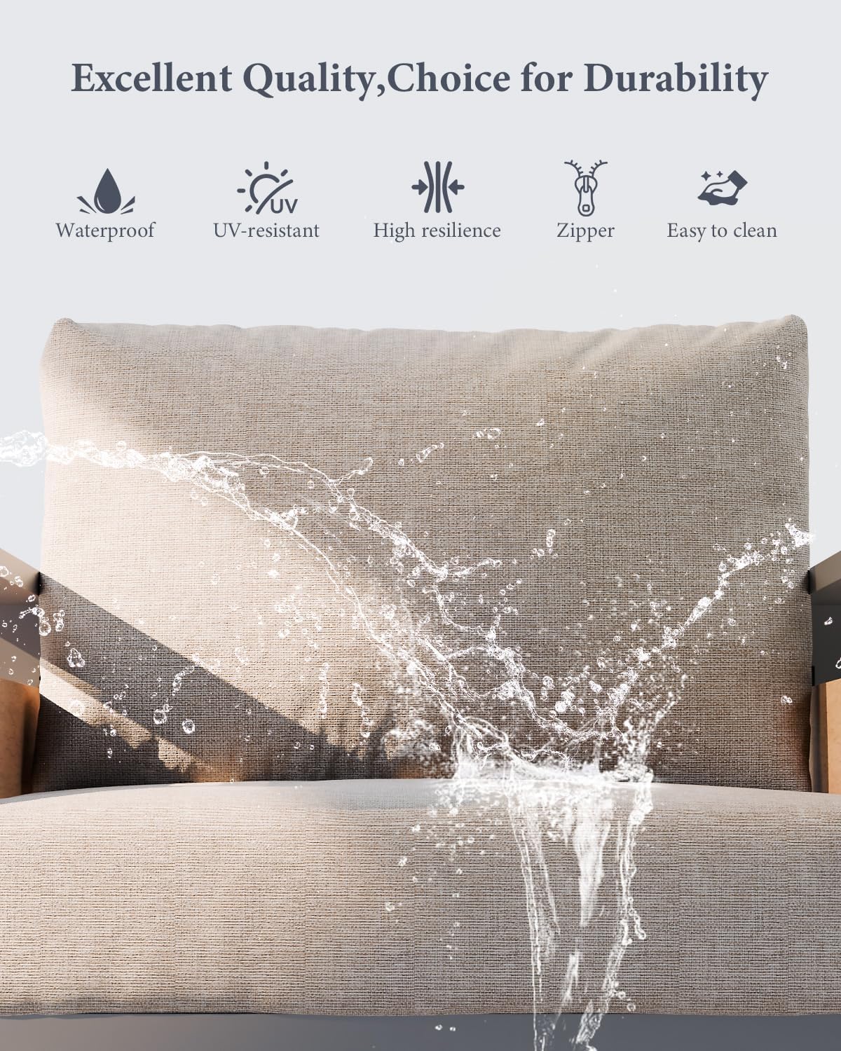 - ⛱️【5.5" Removable & Machine-washable Seat Cushion】 This outdoor furniture's cushion covers are removable and machine-washable, making cleaning effortless and keeping your set looking like new. Backrest of the set comes with high-density sponge, better for upper-body support, cushions have the Velcro to affix, keeping them from sliding around.