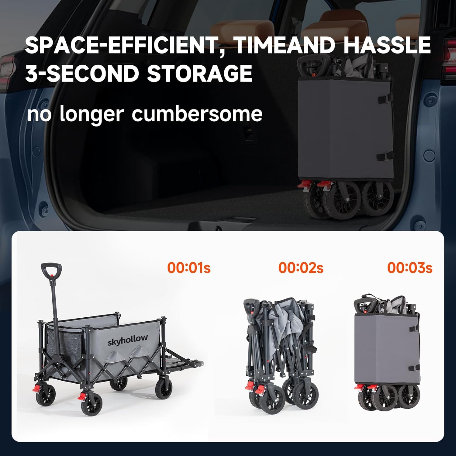 - 【Extra Space-extended tailgate】 The collapsible wagon with tailgate features the latest tailgate design, which increases storage space by 50% when opened, making it easier to access and store items.