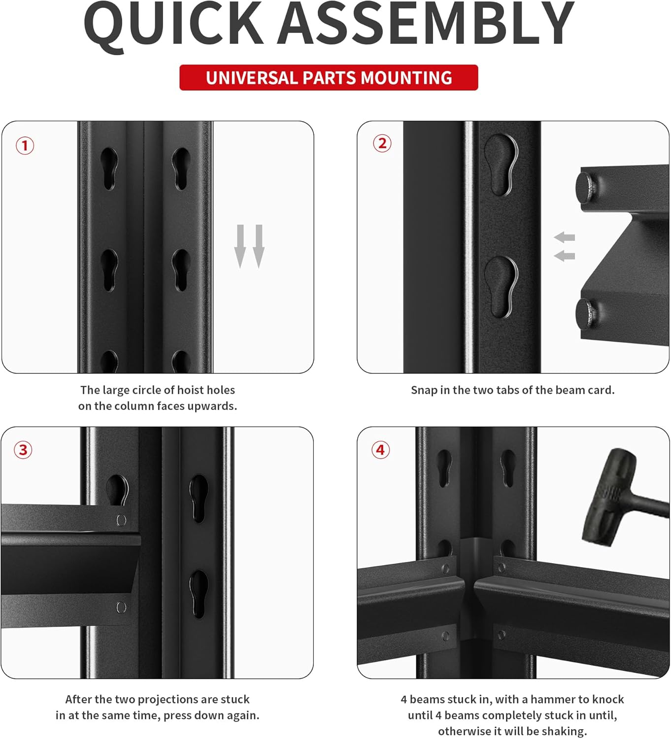 - 🍖【Easy Assembly】This metal shelf is designed for simple and hassle-free assembly. With detailed instructions and all necessary hardware included, you can quickly and easily set up your shelving unit, saving time and effort.