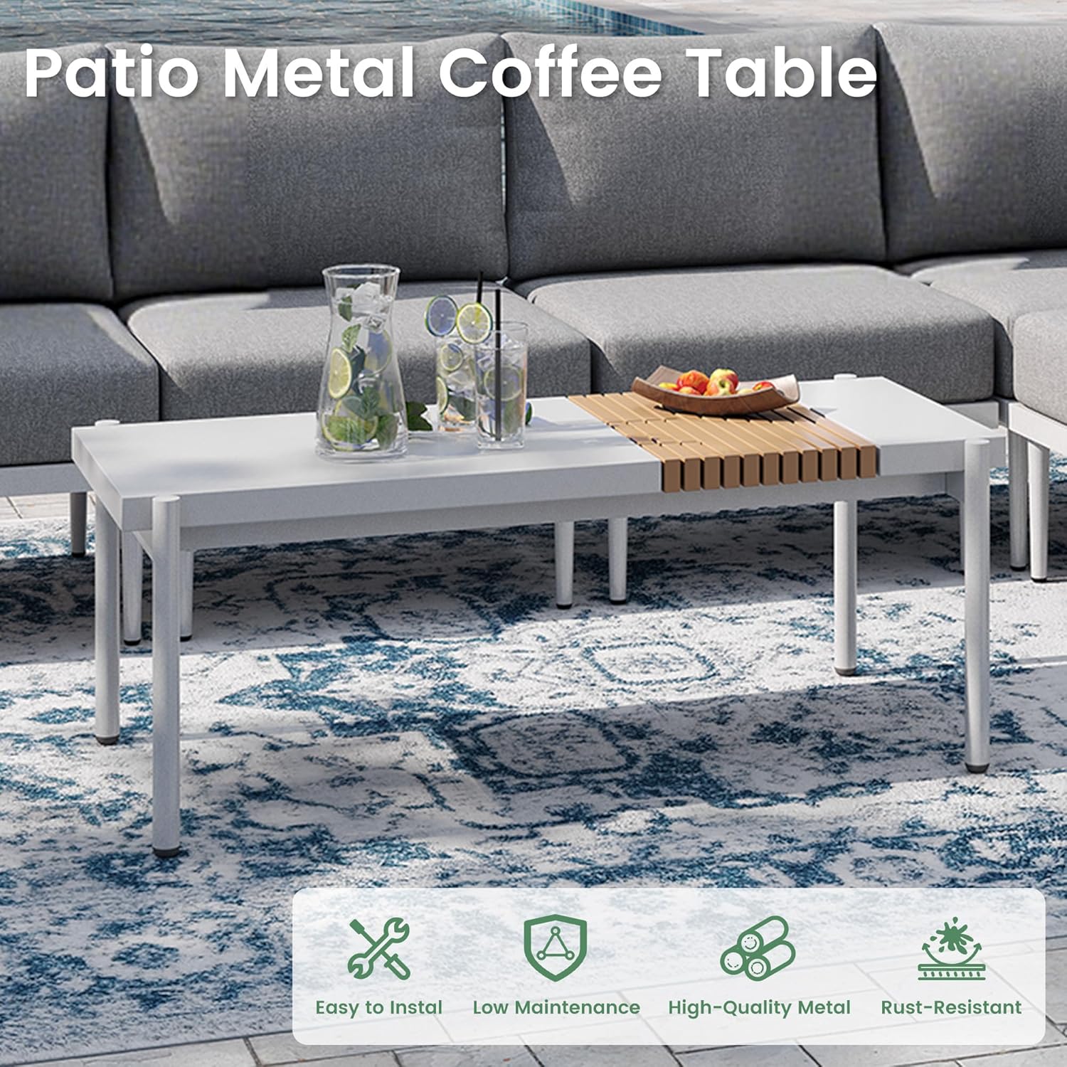 Sundale Outdoor Modern Metal Outdoor Coffee Table with Slatted Wood-Look Tabletop Design, Weather-Resistant Patio Side Table for Garden, Balcony, Poolside(White)