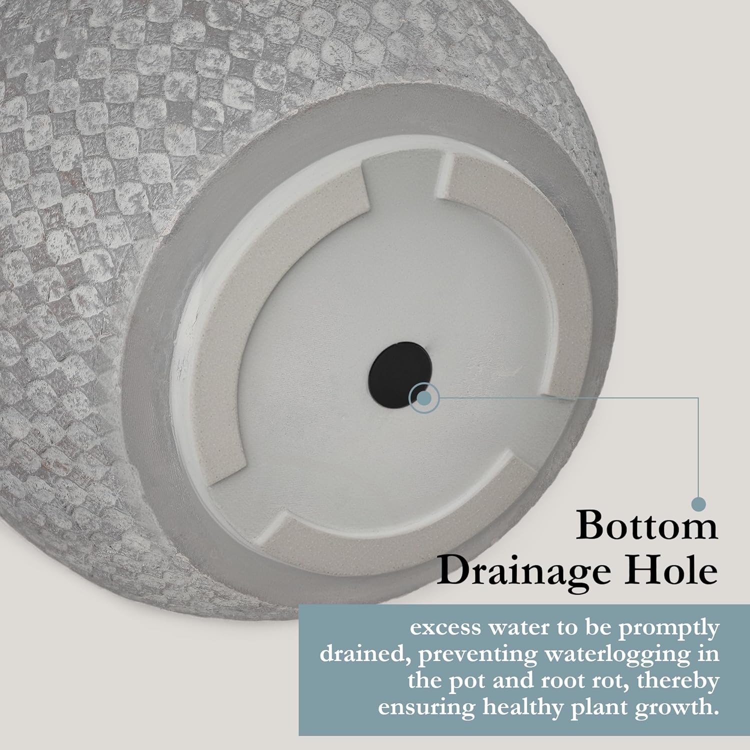 - Set of 2 Matching Round Planters: Includes two versatile sizes: one large (14.5" Dia x 17.5" H) and one medium (12" Dia x 15" H), perfect for pairing plants of different heights for a layered, stylish look.