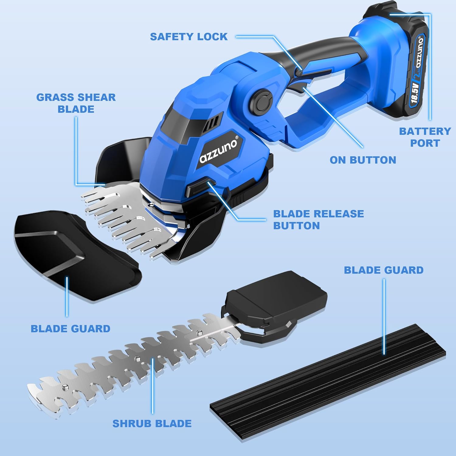 AZZUNO Cordless Hedge Trimmer, 2-in-1 Electric Grass Shears Shrubbery Trimmer with Battery,Handheld Grass Cutter Shrub Trimmer for Gardens, Yards, Lawns, Including Charger (1 Battery)