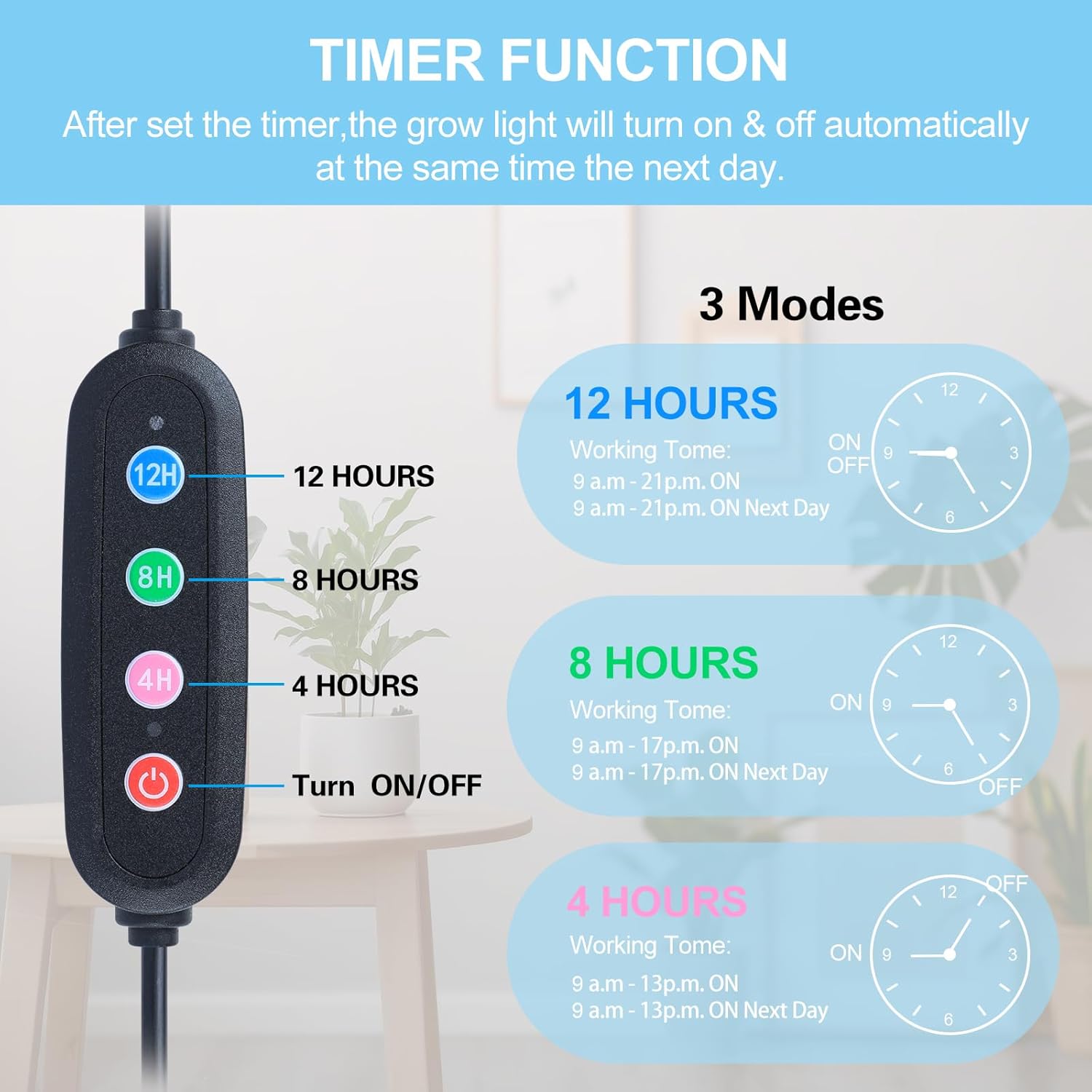 - Smart 4-8-12H Timer---Auto Cycles for Perfect Plant Care (Set It & Forget It!)