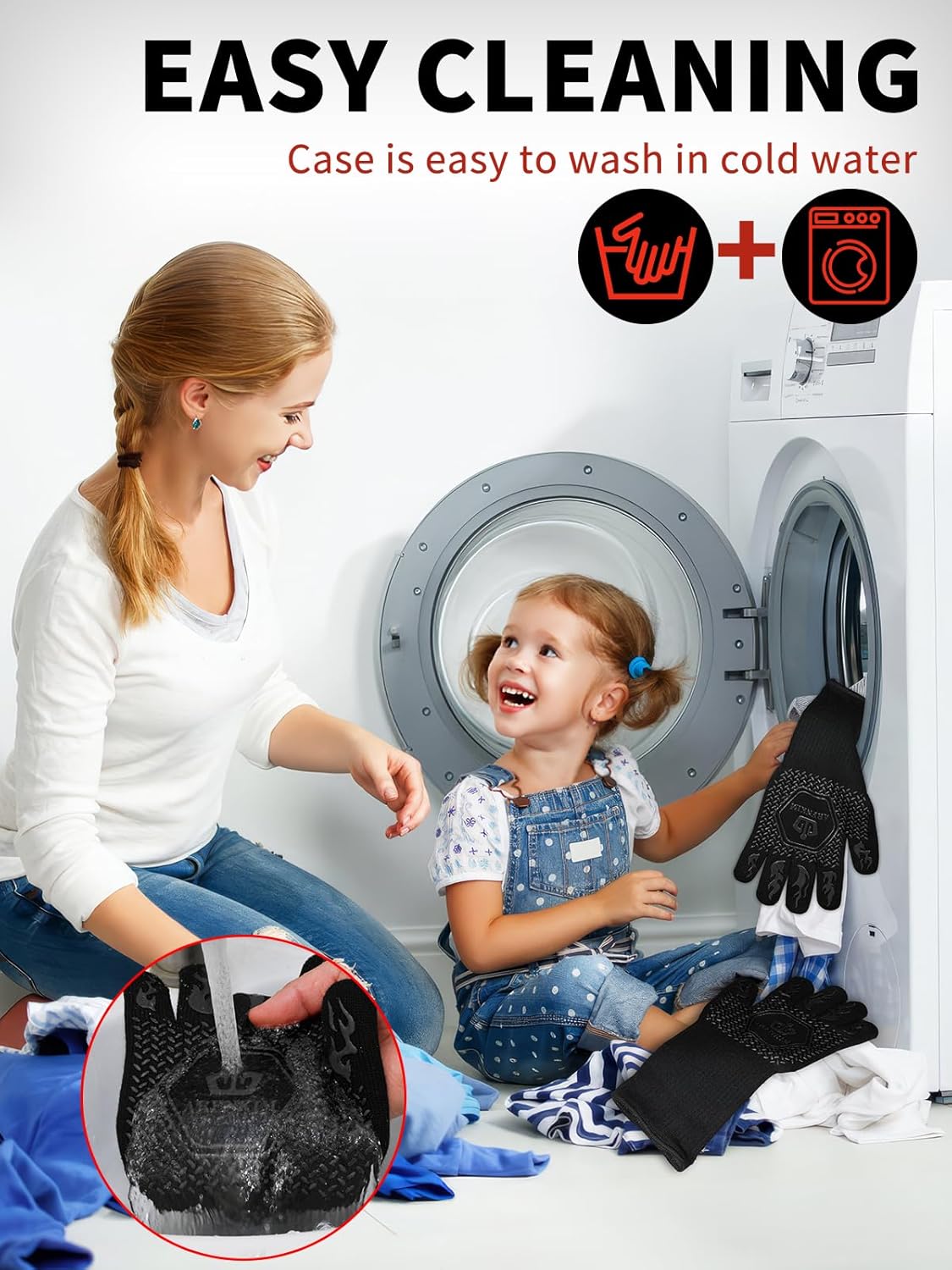 - Easy to Clean: The silicone cooking gloves support hand wash and machine wash. Easily get dirt off from the baking gloves to keep sanitary.