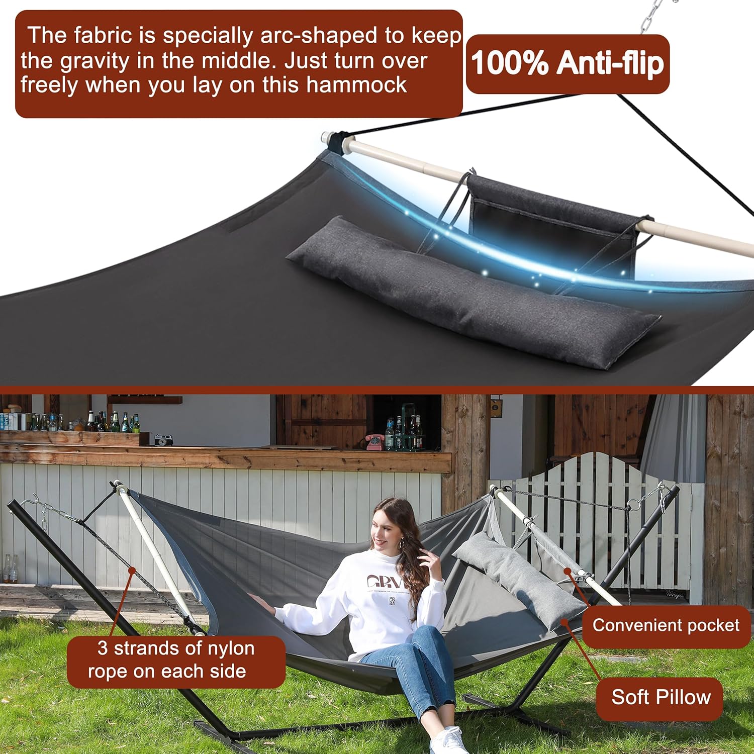 - ✯The pillow is lengthened to 35.4in for two people. Besides, the hammock comes with a storage bag. Portable size to anywhere.