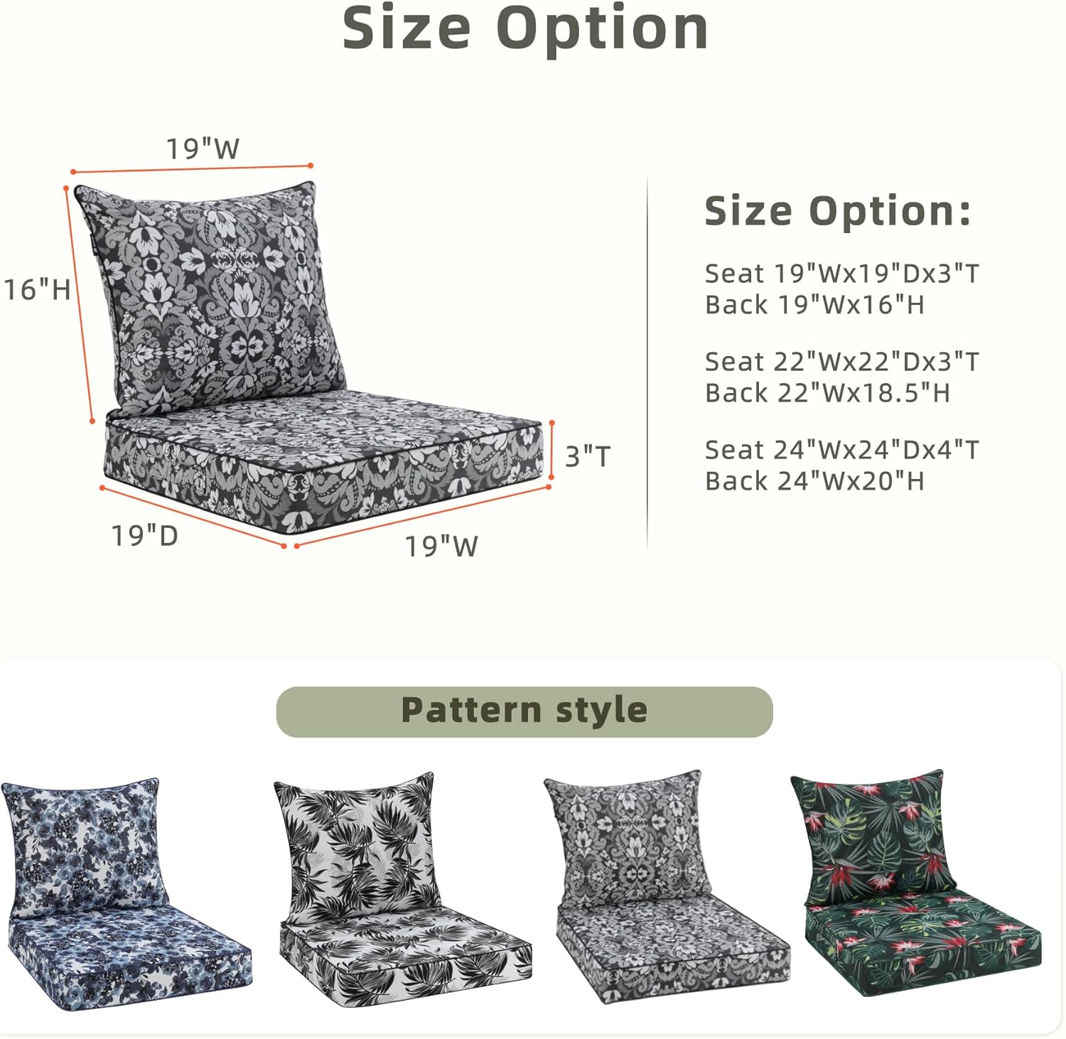 Favoyard Outdoor Seat Cushion 19 x 19 x 3 in Waterproof Pattern Fade Resistant Cover Removable Patio Furniture Cushions Deep Seat & Back Cushion Set with Adjustable Straps for Patio Chair Sofa Couch