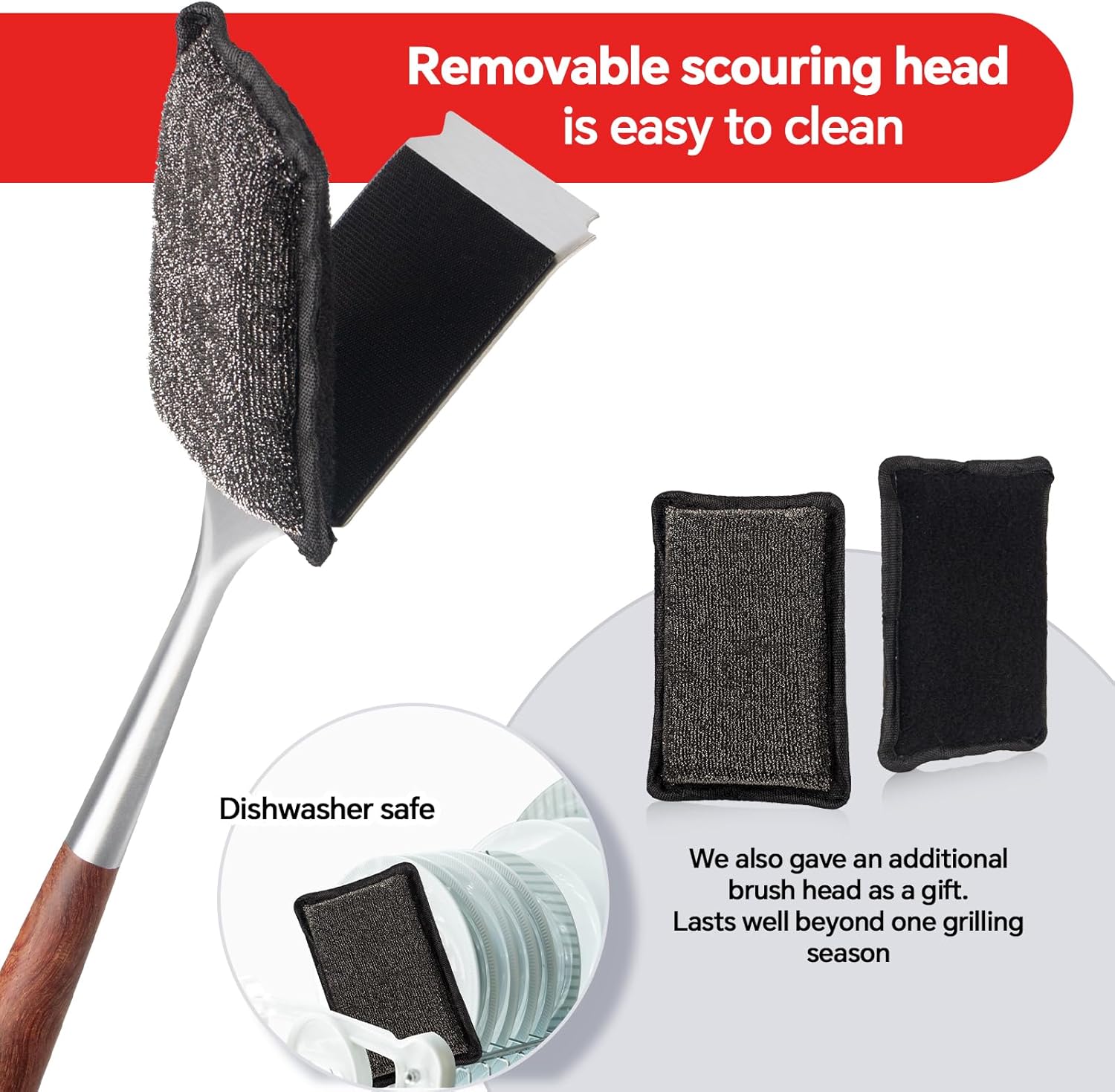- 【Replaceable Grill Brush Head】Easily removable when brush head needs cleaning or replacement,Rinse with water or dishwasher