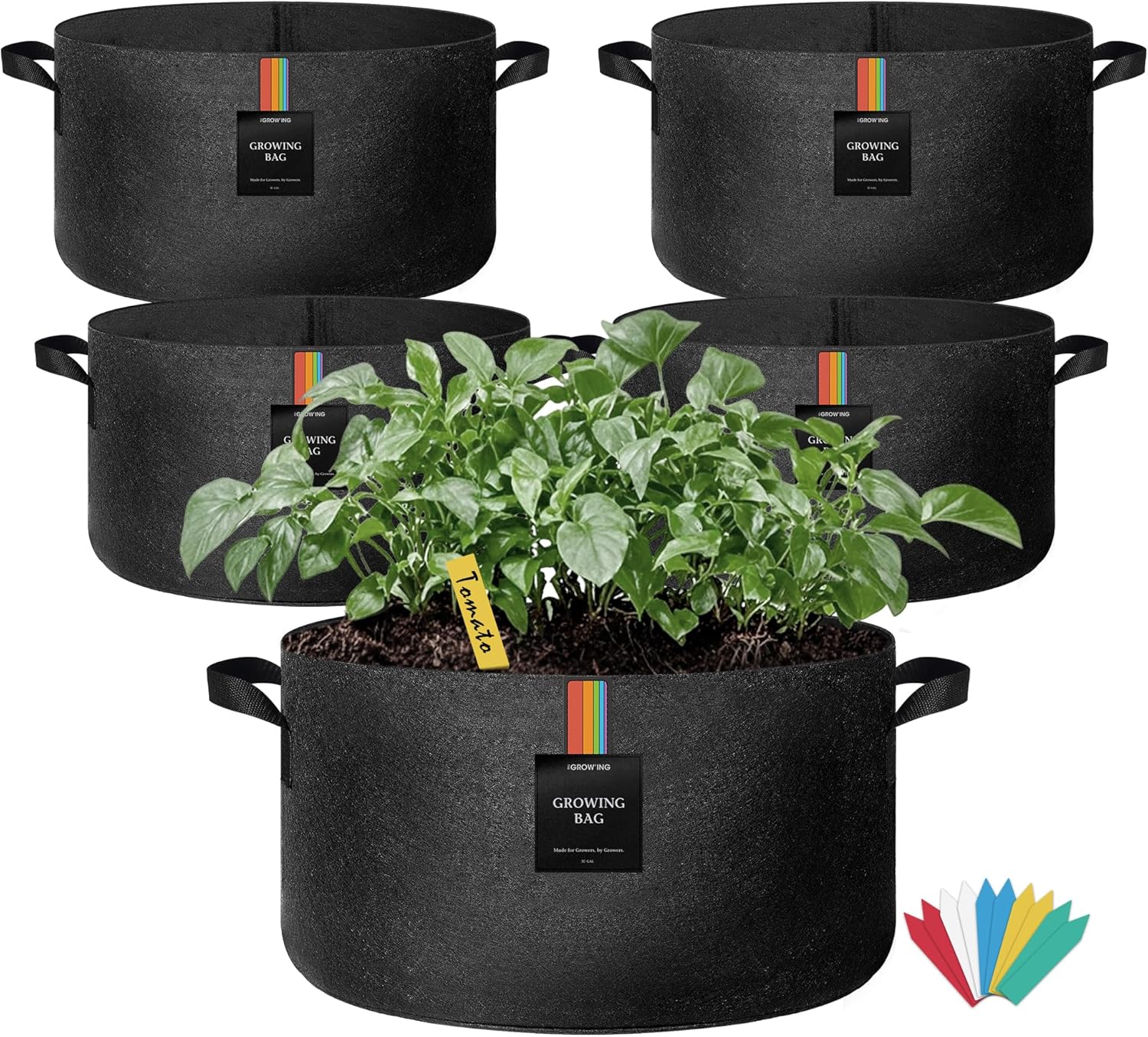 The Growing 5 Pack 15 Gallon Fabric Grow Bags,Thickened Aeration Nonwoven Fabric Plant Pots with Durable Handles,Heavy Duty 300G Planter Pot for Tomato, Fruits, Vegetables and Flowers, Black