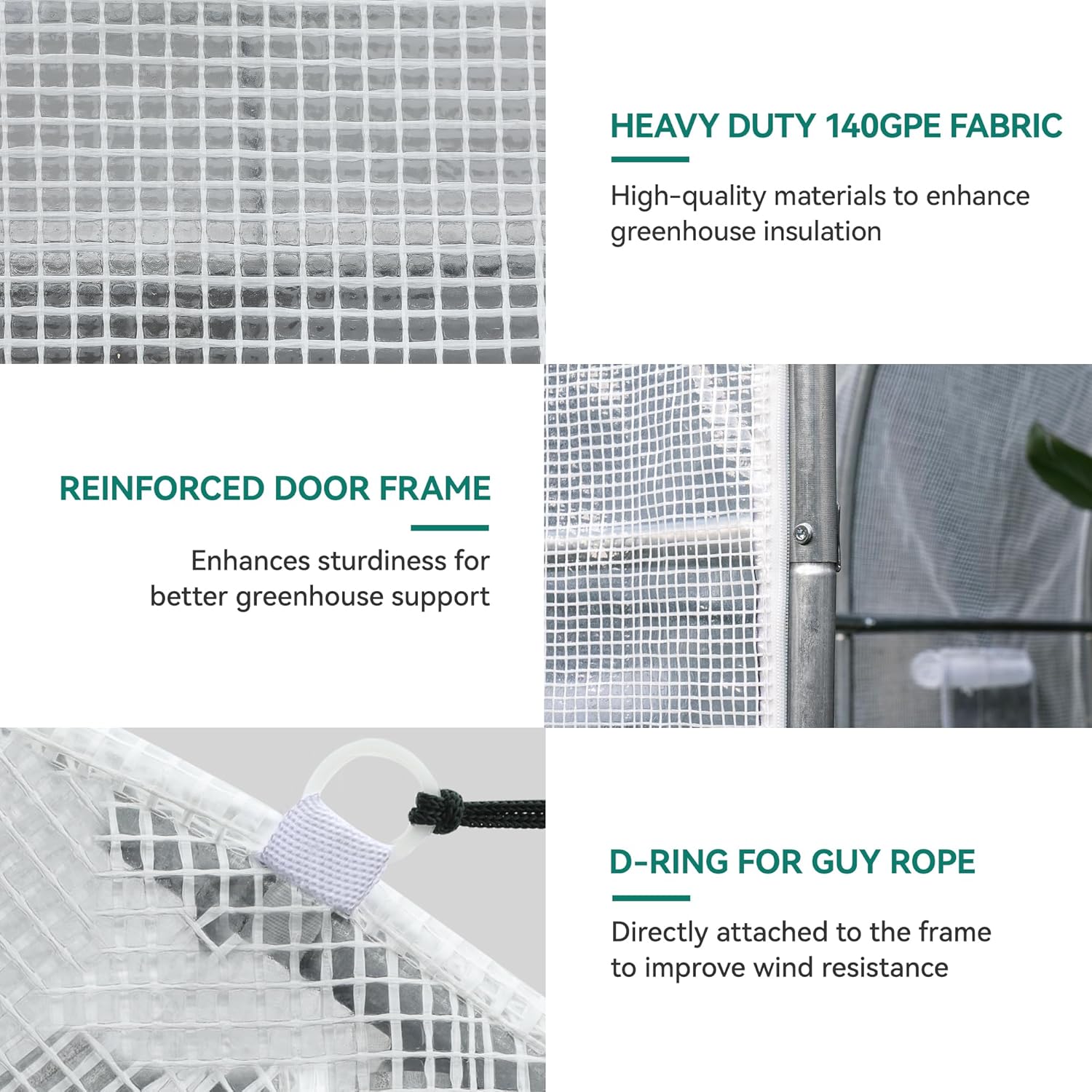 - ZIPPER DOOR- The greenhouse is equipped with zipper doors, you can use the zipper to lock the door to protect the plants. Safety measures and professional installation are highly recommended