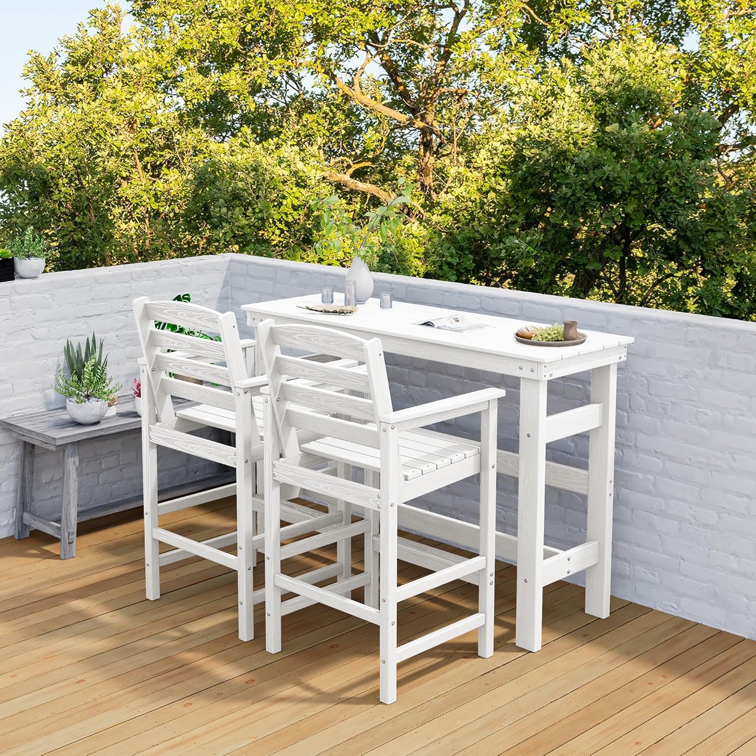 - Waterproof & Quick-Drying: The outdoor bar made from waterproof High-Density Polyethylene (HDPE), the slatted design allows rainwater to drain quickly, ensuring the surface dries rapidly after a downpour. This makes it an ideal choice for outdoor poolside use.