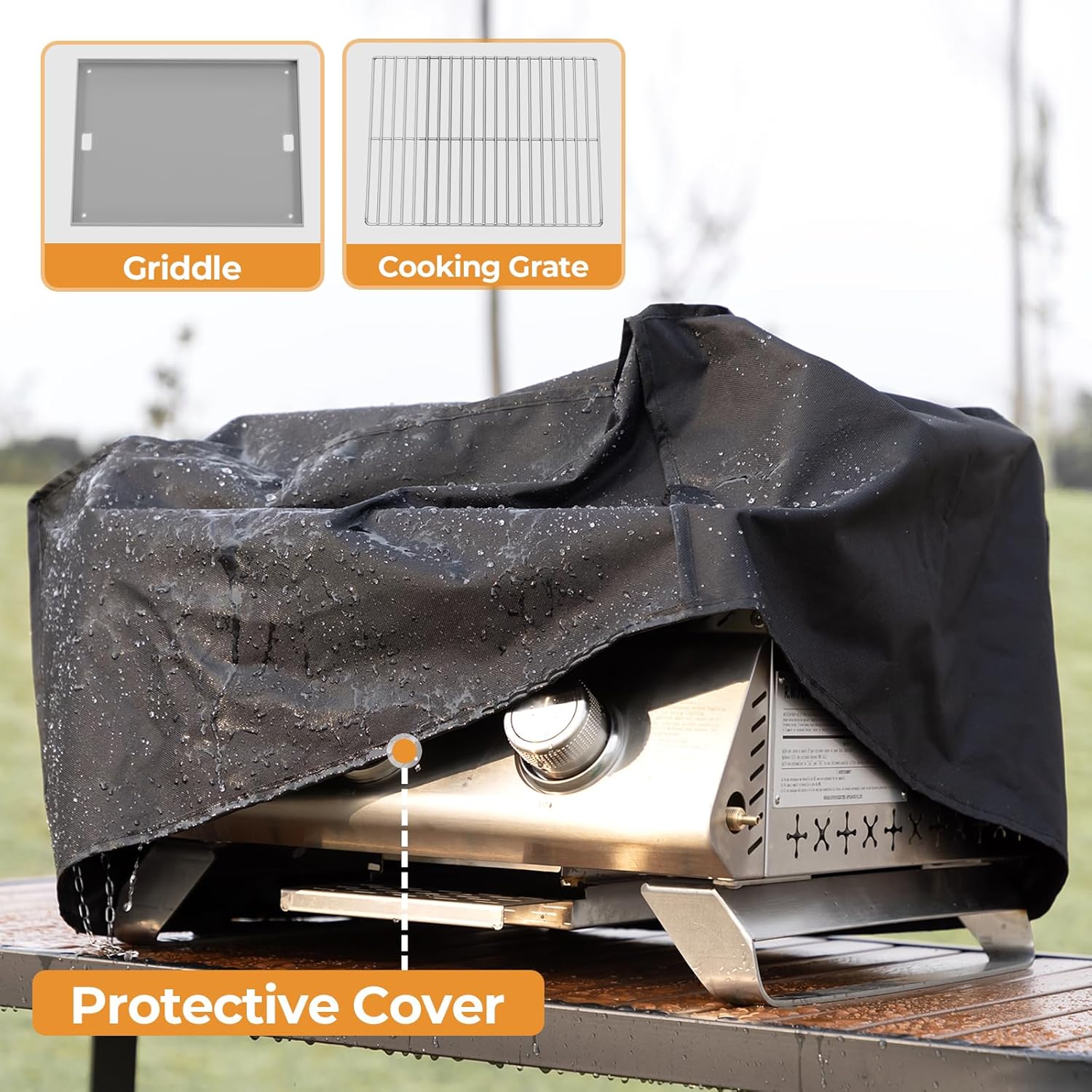- Removable griddle and stainless steel grille: Versatility for convenience,this bbq grill is equipped with a griddle and a grill to meet your diverse needs.Grills can be used to bake a variety of foods, and non-stick pans can be used to make pancakes or fried eggs.Easy to clean, uniform heat distribution
