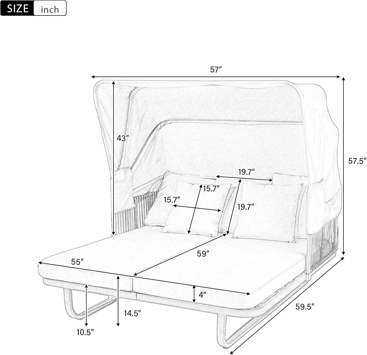 - π Retractable Sunshade Canopy- The sunshade canopy of this daybed fixed securely by straps, is fully retractable, allowing you to adjust the amount of sun exposure depending on your preference. Extend the canopy for full shade or retract it to enjoy the sun. This feature adds a layer of convenience and adaptability to your outdoor relaxation.