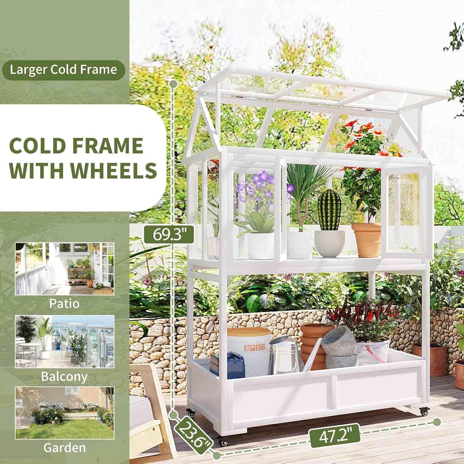 - MOBILE & SECURE DESIGN: Featuring 2 removable wheels with brakes and anti-tipping anchors, this cold frame greenhouse can be easily moved between sunny and shaded areas, then locked securely in place - perfect for adjusting to seasonal sunlight patterns on patios or balconies