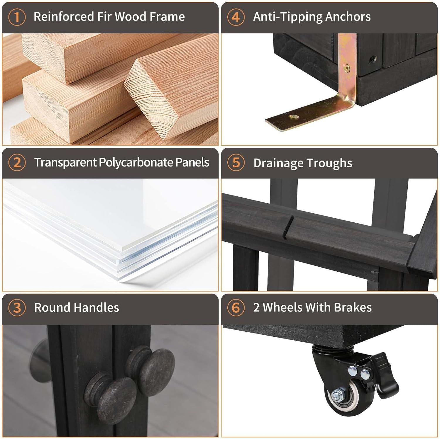 - STURDY FIR WOOD & POLYCARBONATE CONSTRUCTION: Our greenhouse combines natural fir wood frame with transparent polycarbonate panels that diffuse sunlight evenly, creating an ideal growing environment while protecting plants from harsh weather conditions, extending your growing season