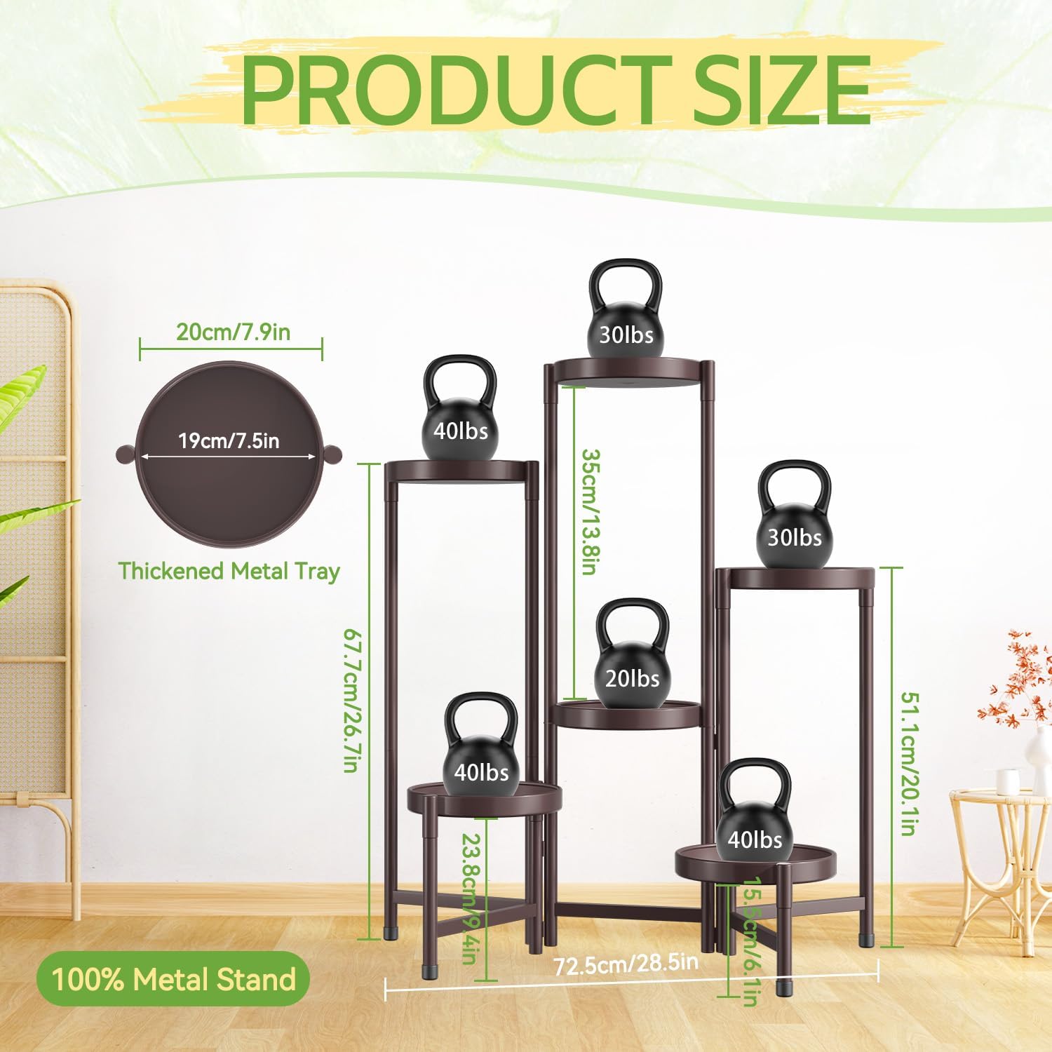 - 7.9-Inch Wide Trays with Rim: This tall plant stand features 7.9-inch round trays, suitable for pots up to 7.5 inches wide. Each tray is designed with raised edges that guard against spills and tipping, keeping your plants safe and steady