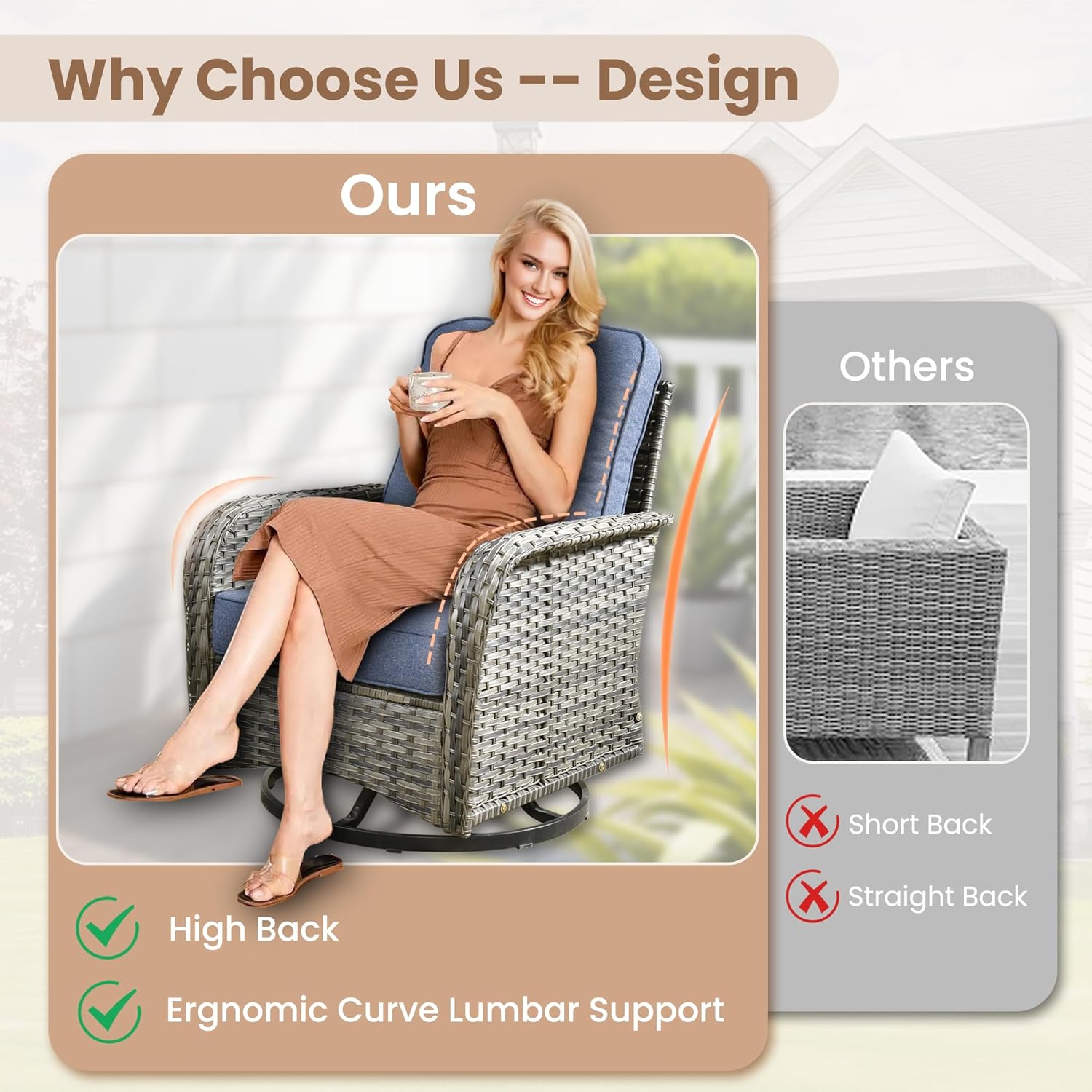 HOOOWOOO Patio Furniture Set,7 Pieces Outdoor Conversation Set,All Weather Wicker Loveseat Sofa Set with High Back Swivel Rocking Chairs Tables,Denim Blue