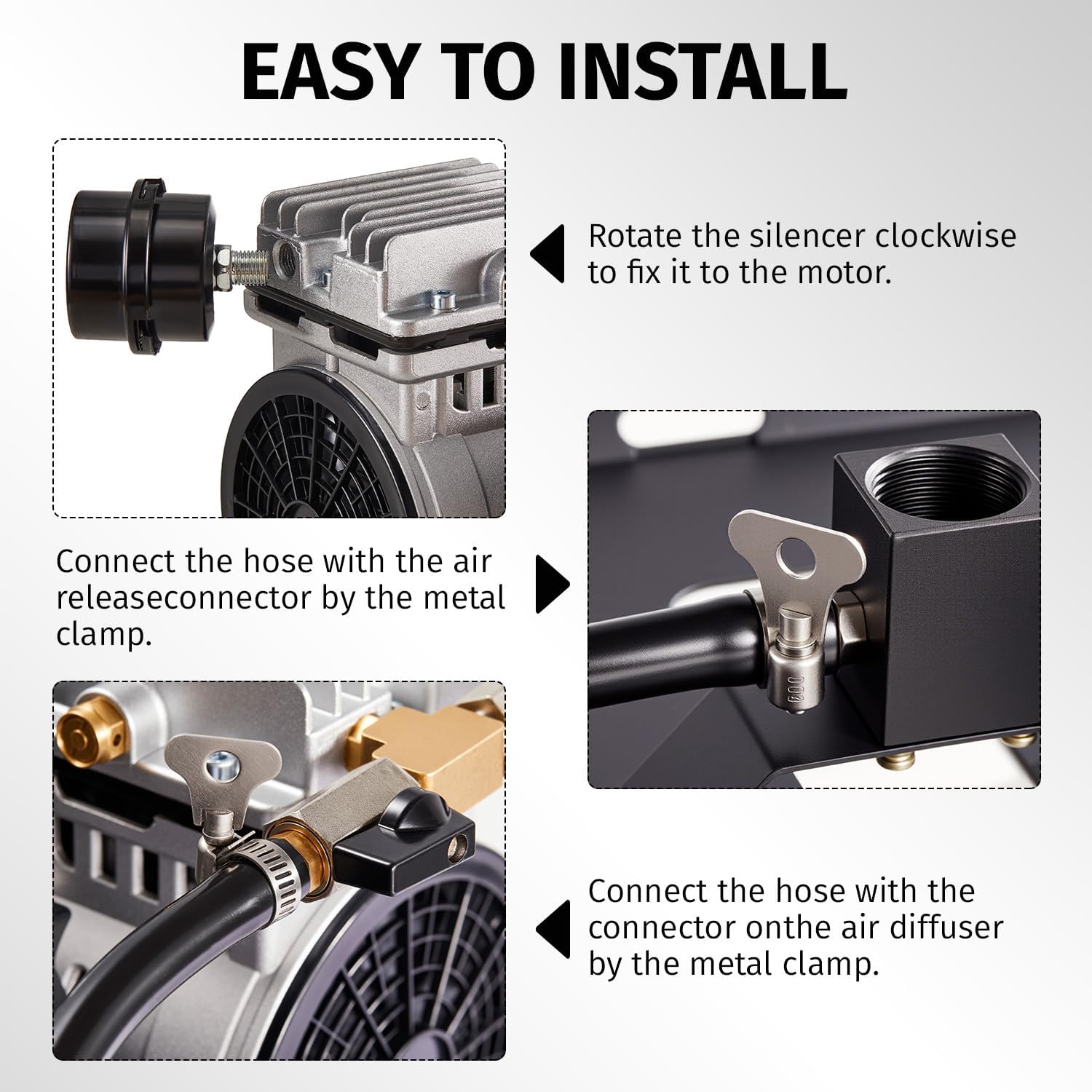 - 2.Dual rocking piston design with cooling fins ensures quiet, efficient performance while maintaining consistent airflow