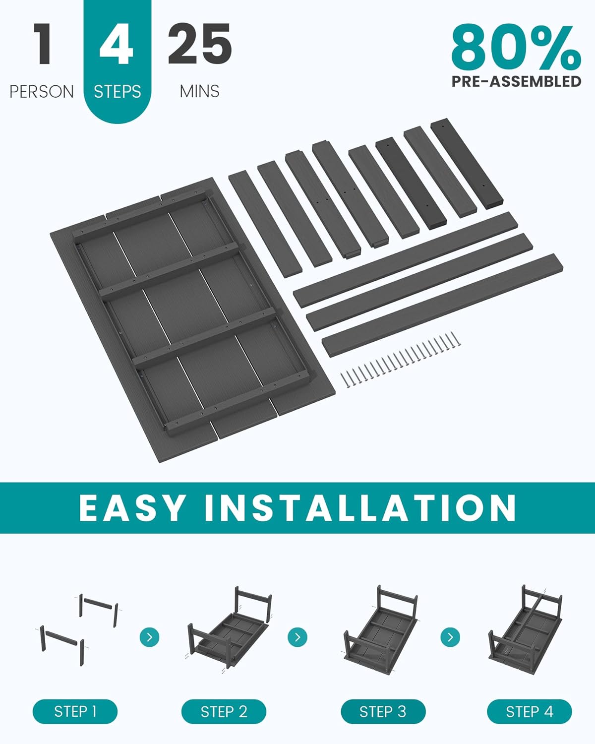 - Low Maintenance & Rust-Resistant: Built with 304 stainless steel screws for rust resistance and easy upkeep, making it perfect for outdoor environments