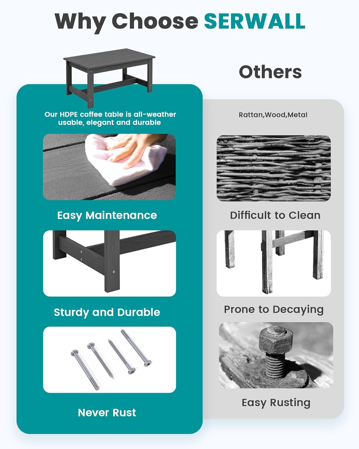 - After-sales Support: We want our customers to be 100% satisfied with serwall outdoor table - you can always come to us for any product questions and product care, we are committed to your satisfaction