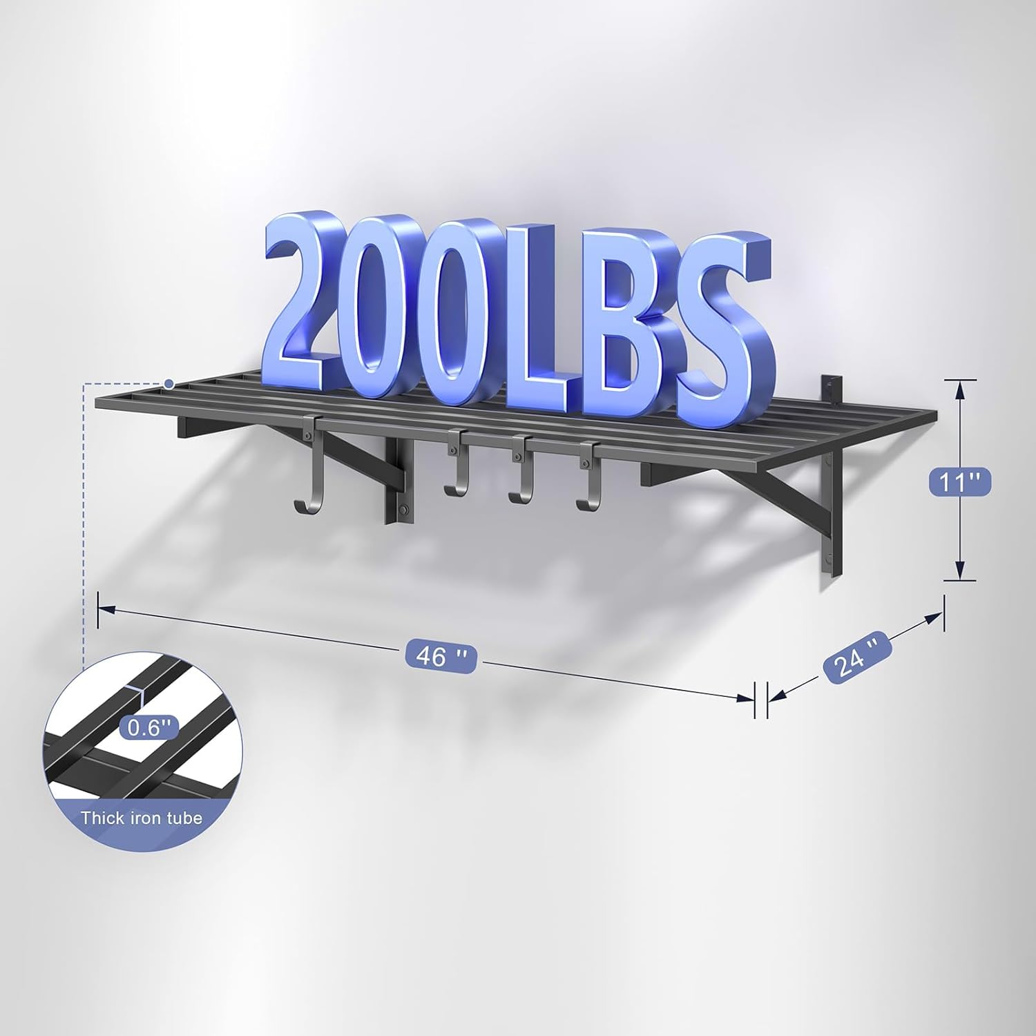 - PREMIUM STRENGTH & STABILITY: Engineered with heavy-duty steel, our wall shelf system features reinforced square tube supports, a seamless integrated frame, and secure U-hooks for superior durability. Every component undergoes rigorous quality testing to ensure maximum safety and long-lasting performance