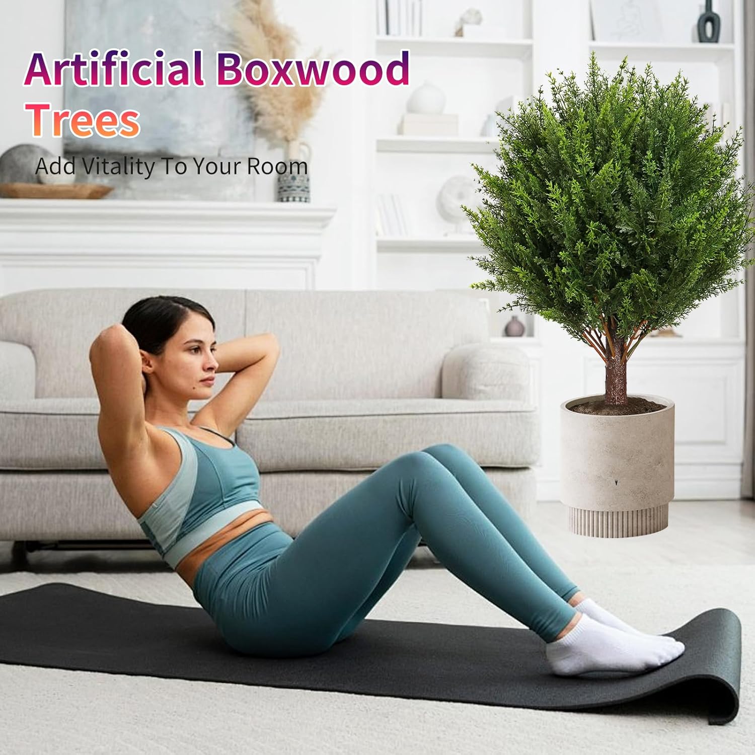 - 【Multi-medium Decoration Choice】This outdoor artificial plant cedar ball tree is realistic looking, each simulated shrub plant comes with high quality black ground spikes, you can put them into any matching pots or insert them directly into the soil, which can better match the style of your house