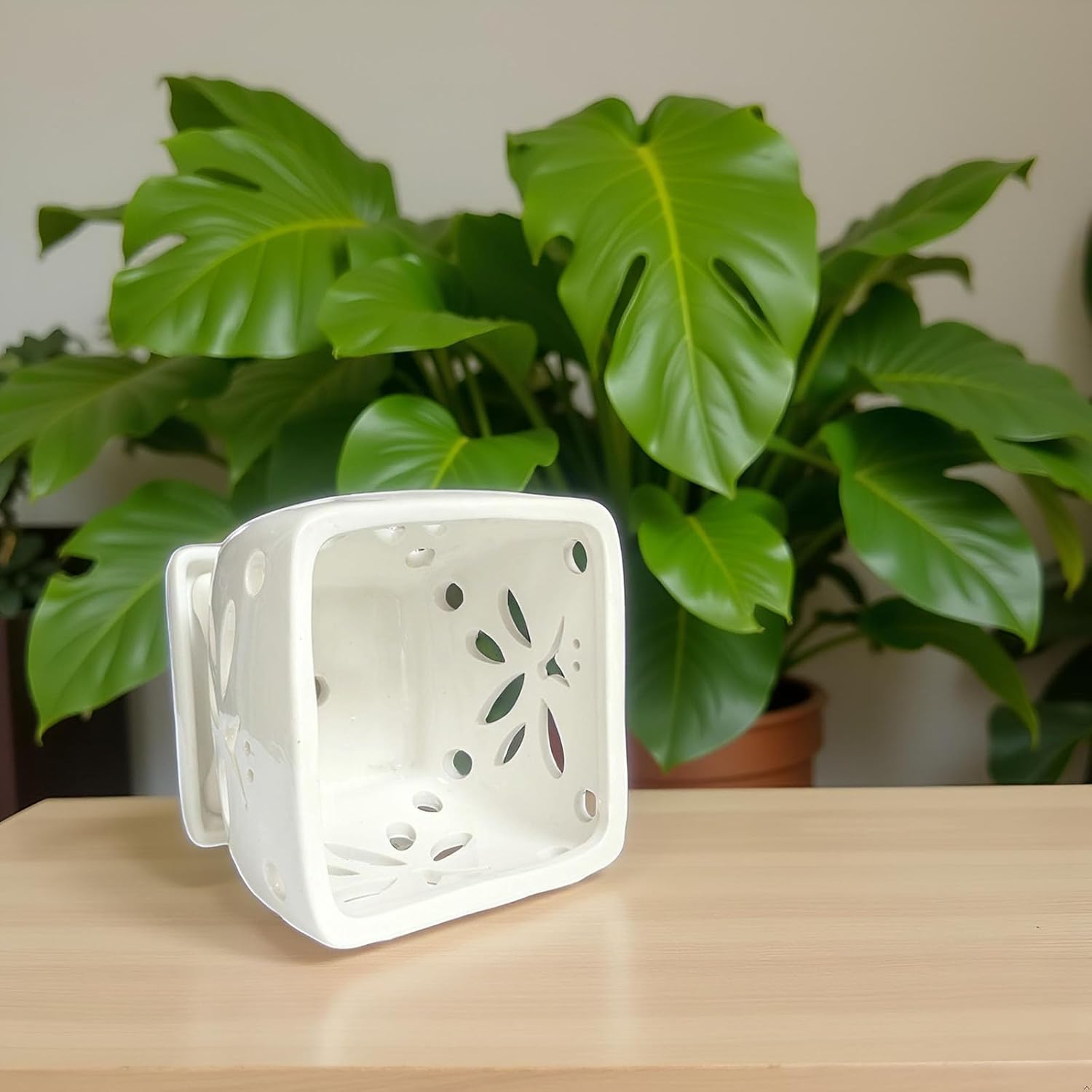 Orchid Pots with Holes Square Ceramic Orchid Planter Pots 5.5 inch (White)