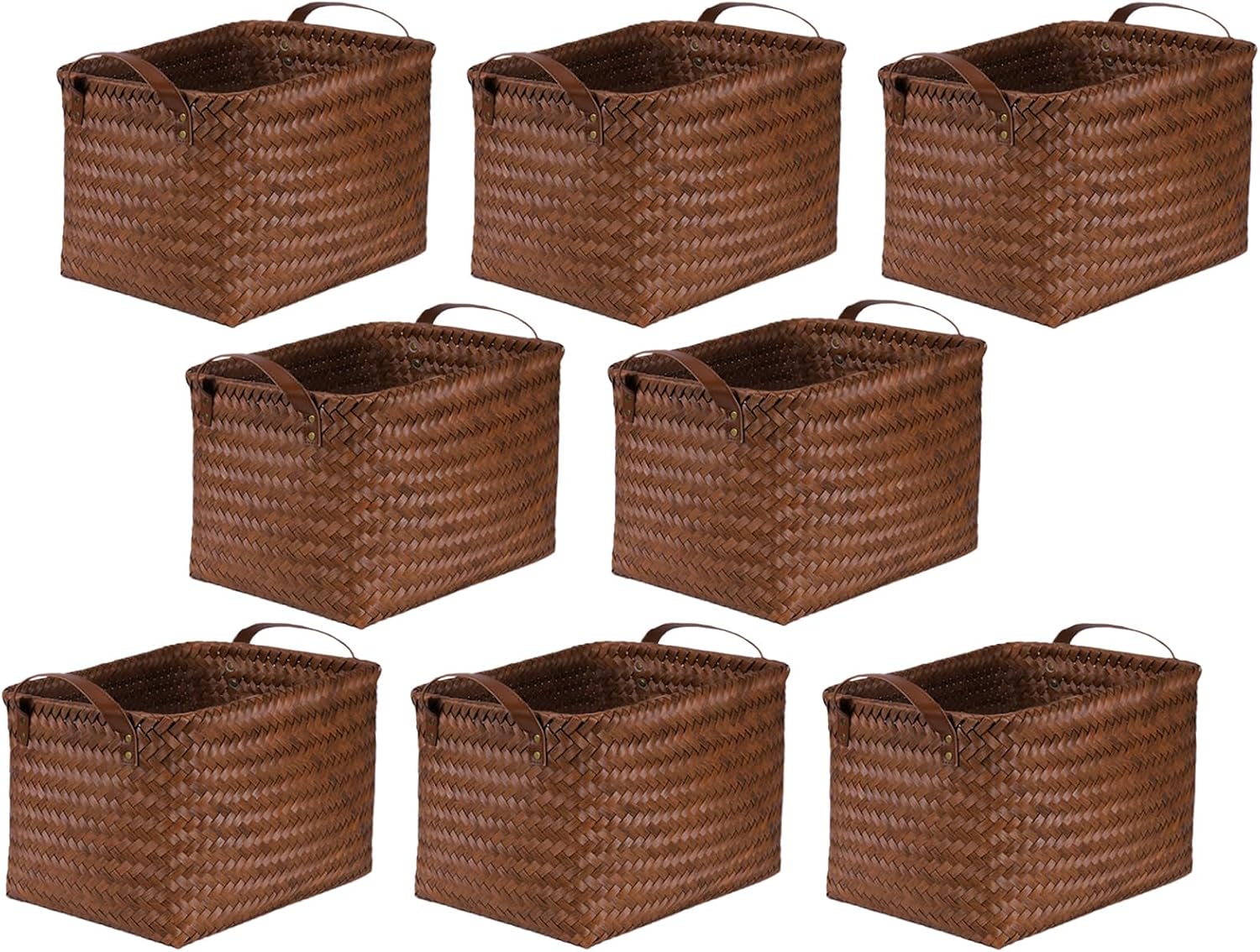 BROWNLILY Handwoven Clothes Basket Laundry Hampers Large Wicker Storage Baskets for Shelves Blankets Closet Storage Bins Car Bedroom Bathroom Organizers and Storage Bath (8, Brown)