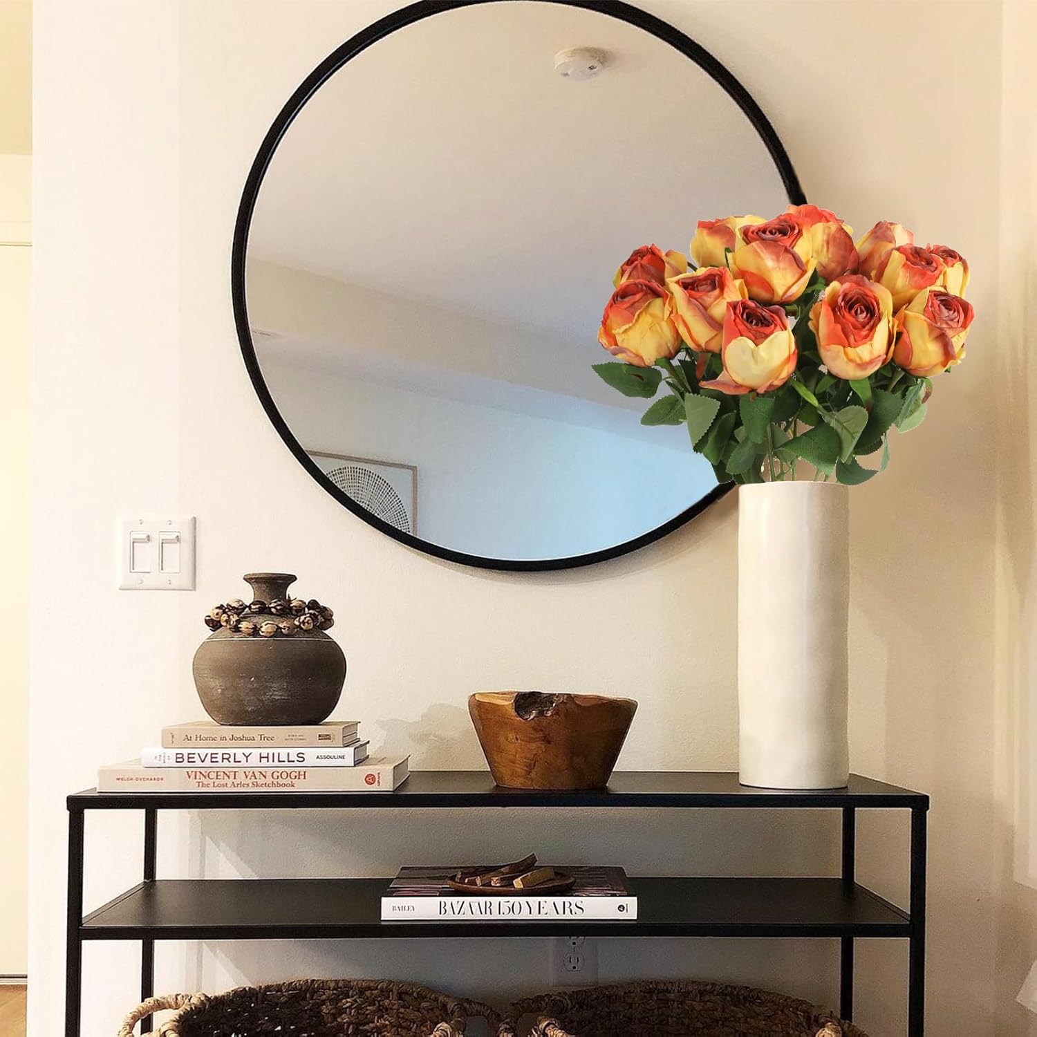 12pcs Orange Roses Artificial Flowers Vintage Burnt Edge Rose 20" Realistic Silk Roses Bouquet with Long Stem for Wedding Party Floral Centerpieces Decoration (Orange)