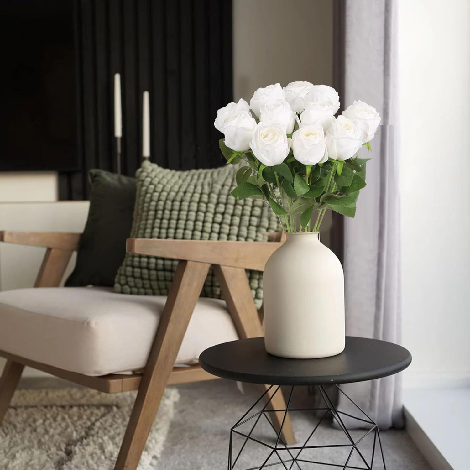 12 pcs White Roses Artificial Flowers Vintage Burnt Edge Rose 20" Realistic Silk Roses Bouquet with Long Stem for Wedding Party Floral Centerpieces Decoration (White)