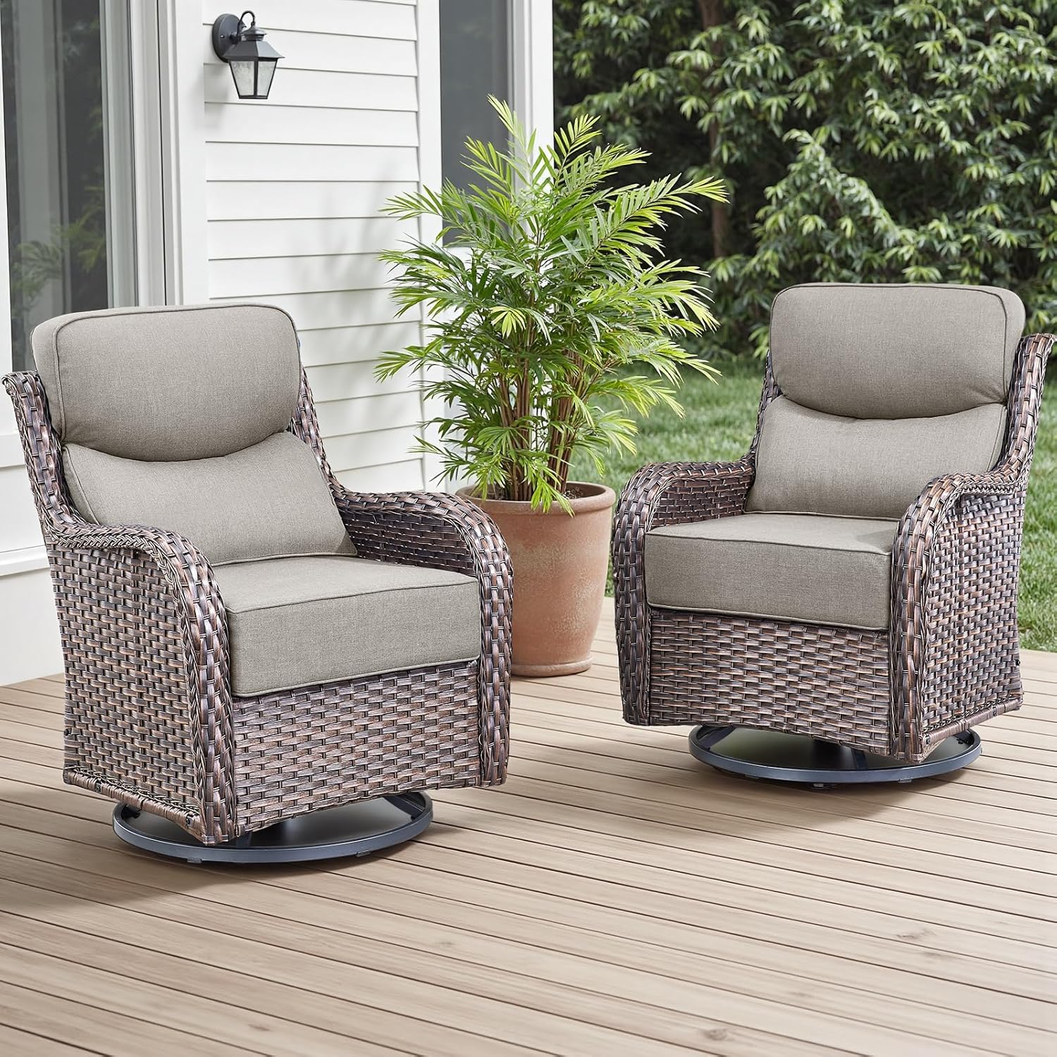 - 【Deep Seating & 6 inch Comfort Cushions】This rattan patio swivel chairs feature deep and wide seats with 6-inch thick sponge-padded cushions create the ultimate patio seating experience.