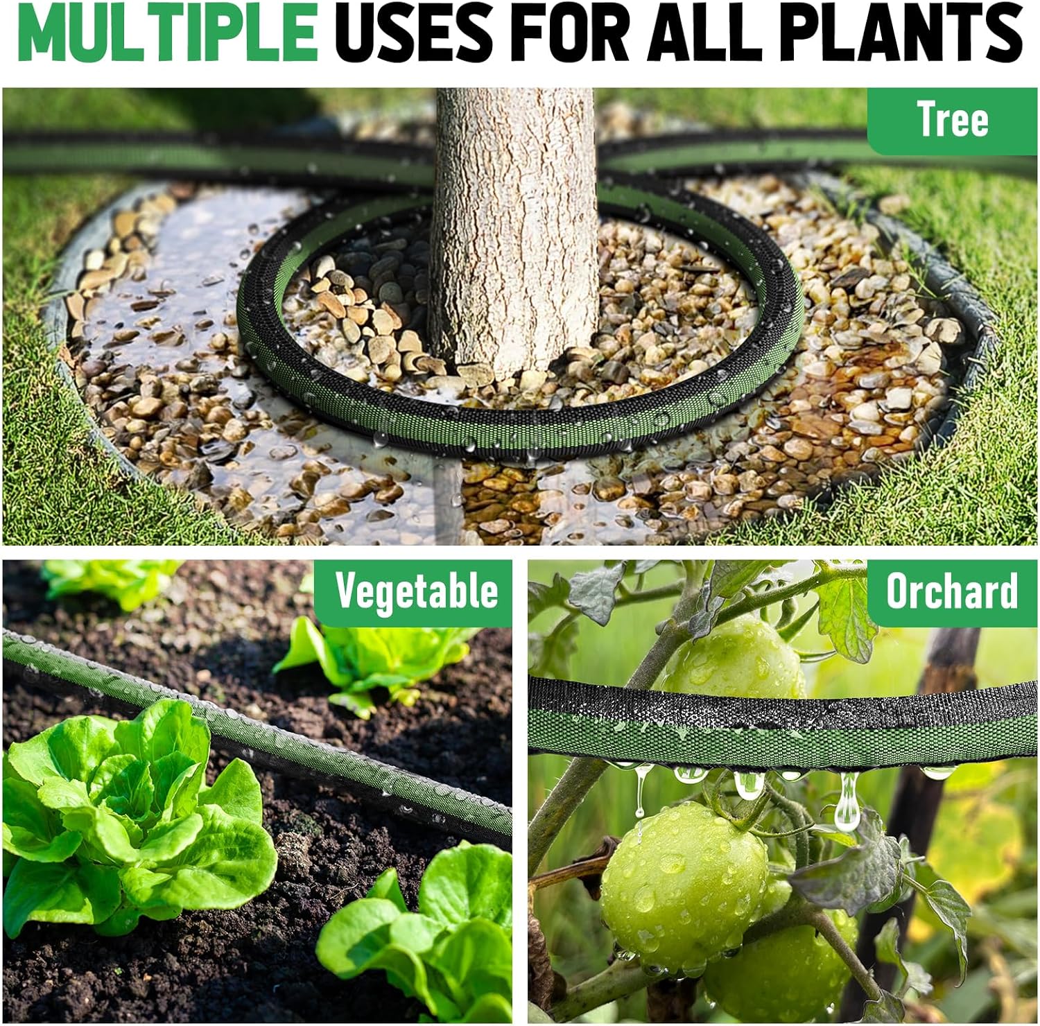 - Premium Drip Hose for Efficient Watering: Our 100FT garden soaker hose features a double-layer design (flexible rubber core + high-density fabric sleeve)for consistent slow soaking seep, even drip irrigation directly to plant roots. Saves 80% water by minimizing evaporation—ideal for eco-friendly gardening.
