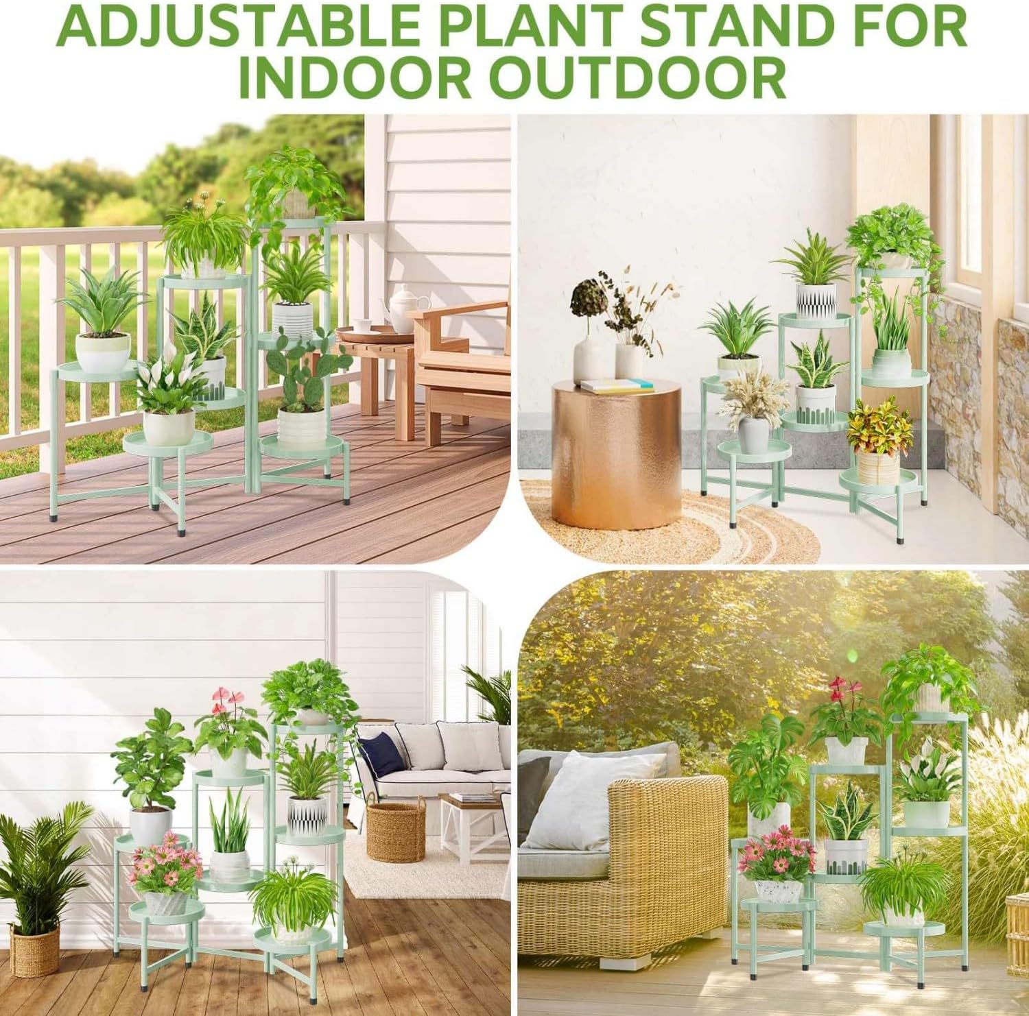 - Unique Modern Style Holder: The 7 tier plant stand is designed with a unique spiral tiered structure that can hold up to 7 pots without blocking each other, so that each of your plants can fully enjoy the sunlight. Modern and classic in style, this outdoor plant stand is perfect for decorating balcony, porch, garden, patio, window and office