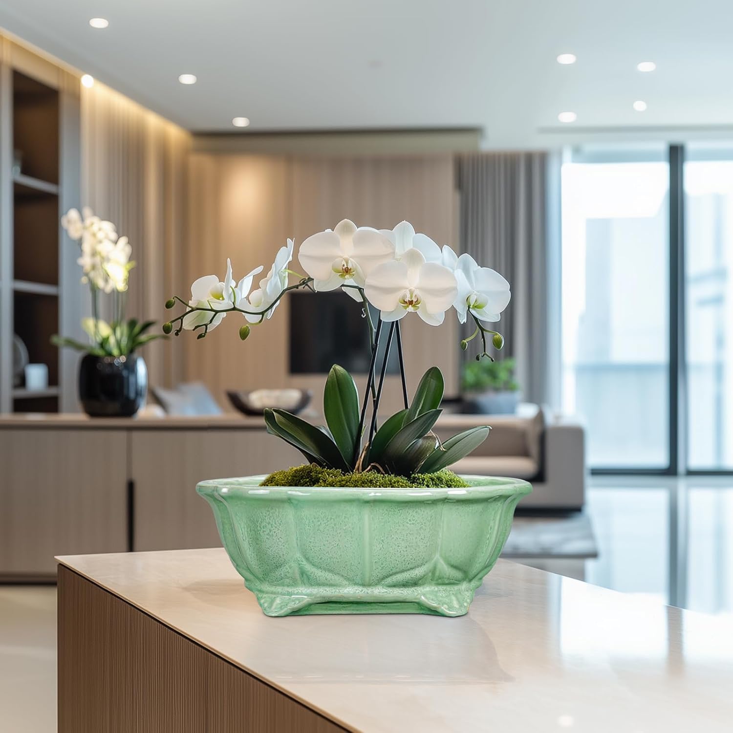 - Planter Design: Featuring a beautiful blue reactive glaze finish and elegant rectangluar appearance, this bonsai pots combines practicality with beauty, suitable for table, desk, windowsill, shelves, living room, bedroom, bathroom, porch, study, office, patio, balcony, zen garden, any indoor or outdoor space